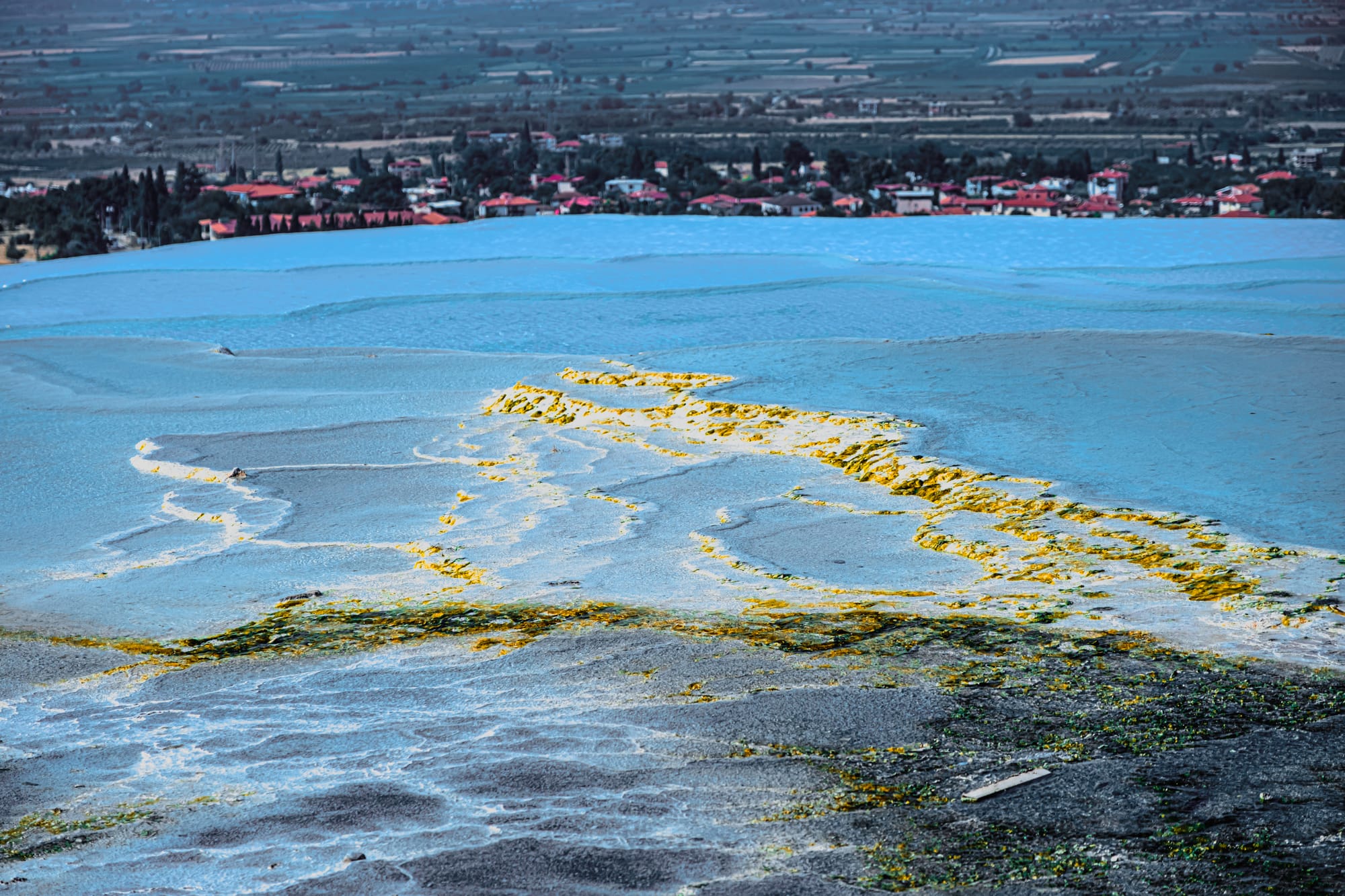 From gleaming white ridges to blue pools and bursts of sulfur yellow, Pamukkale defies the palette