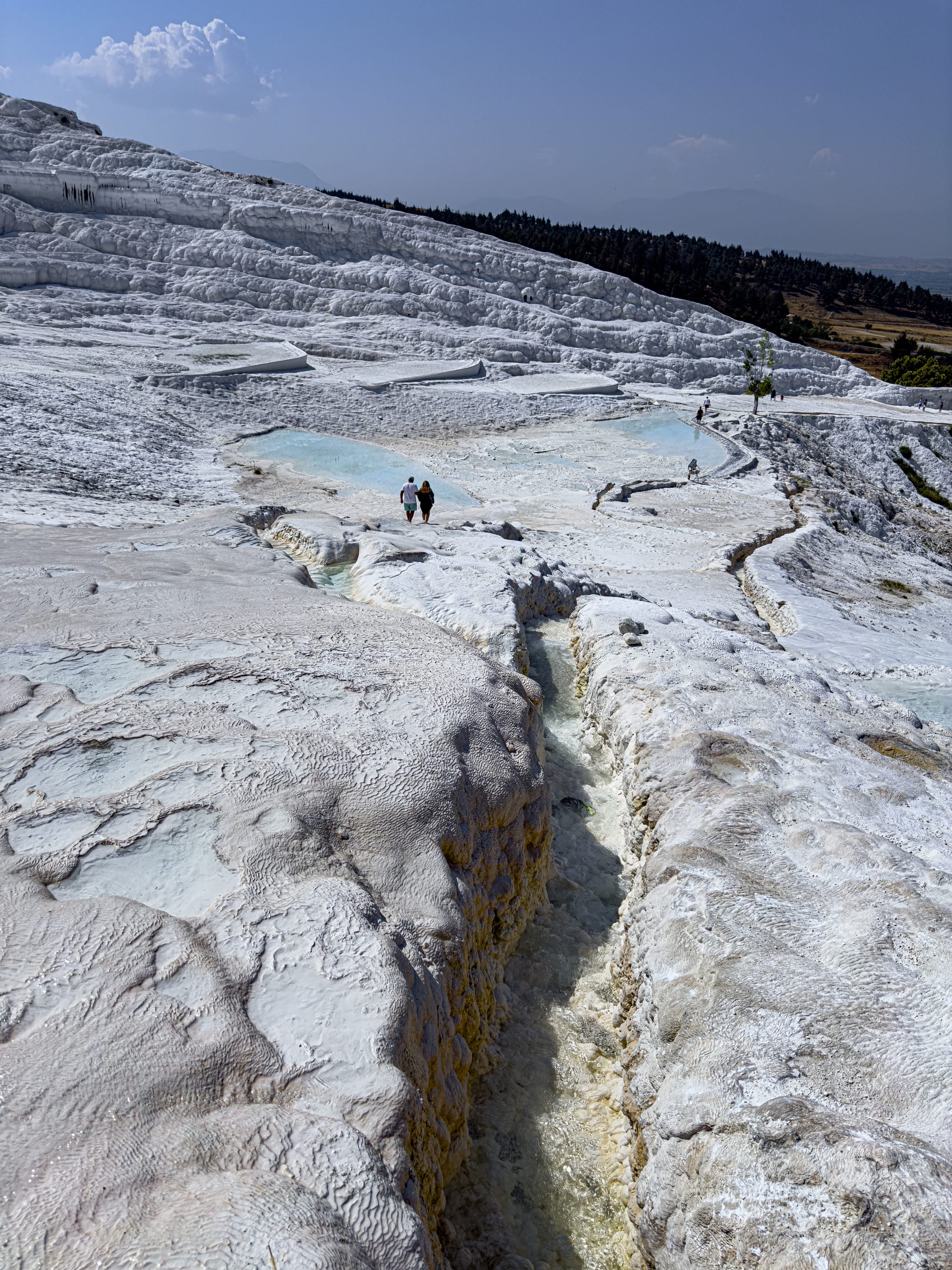 The pools fill and empty with the help of a water distribution system designed to protect the most fragile areas from erosion. You’ll notice that some parts of the travertines are dry—this is intentional, part of a rotation system that allows different areas to rest and recover.