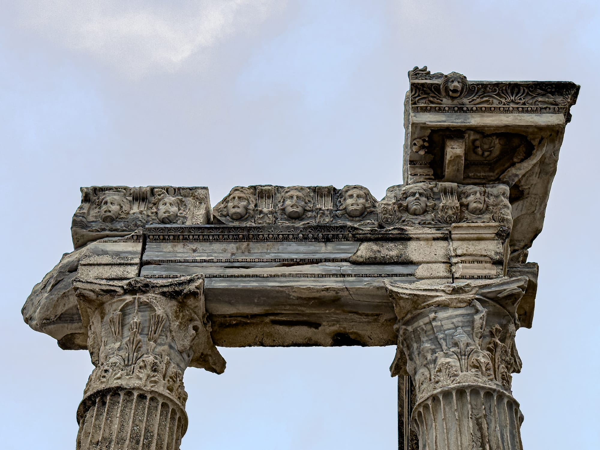 Today, five of its fluted Corinthian columns remain, stark against the blue sky and backed by the waves of the Mediterranean. Even in partial ruin, the structure retains a sense of grandeur. As the light shifted over the day, we watched the columns glow gold, and the sea beyond darken into indigo.