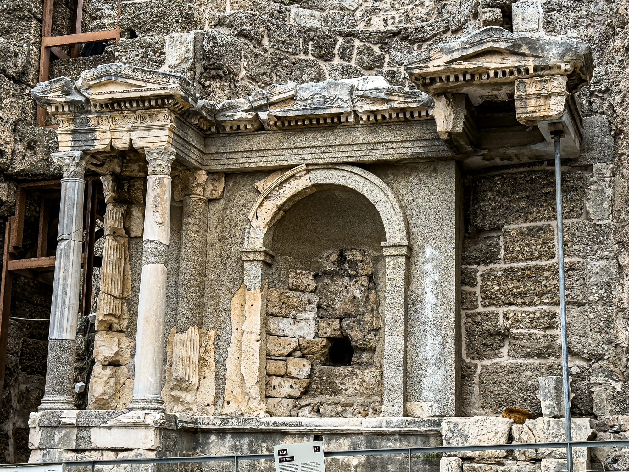 Side’s ancient theater, one of the largest in Anatolia, could once seat 15,000 people. Though we didn’t linger long there, the scale alone was astonishing. Other highlights include the nymphaeum (a monumental fountain), Roman baths, and aqueducts that once carried fresh water from the mountains.