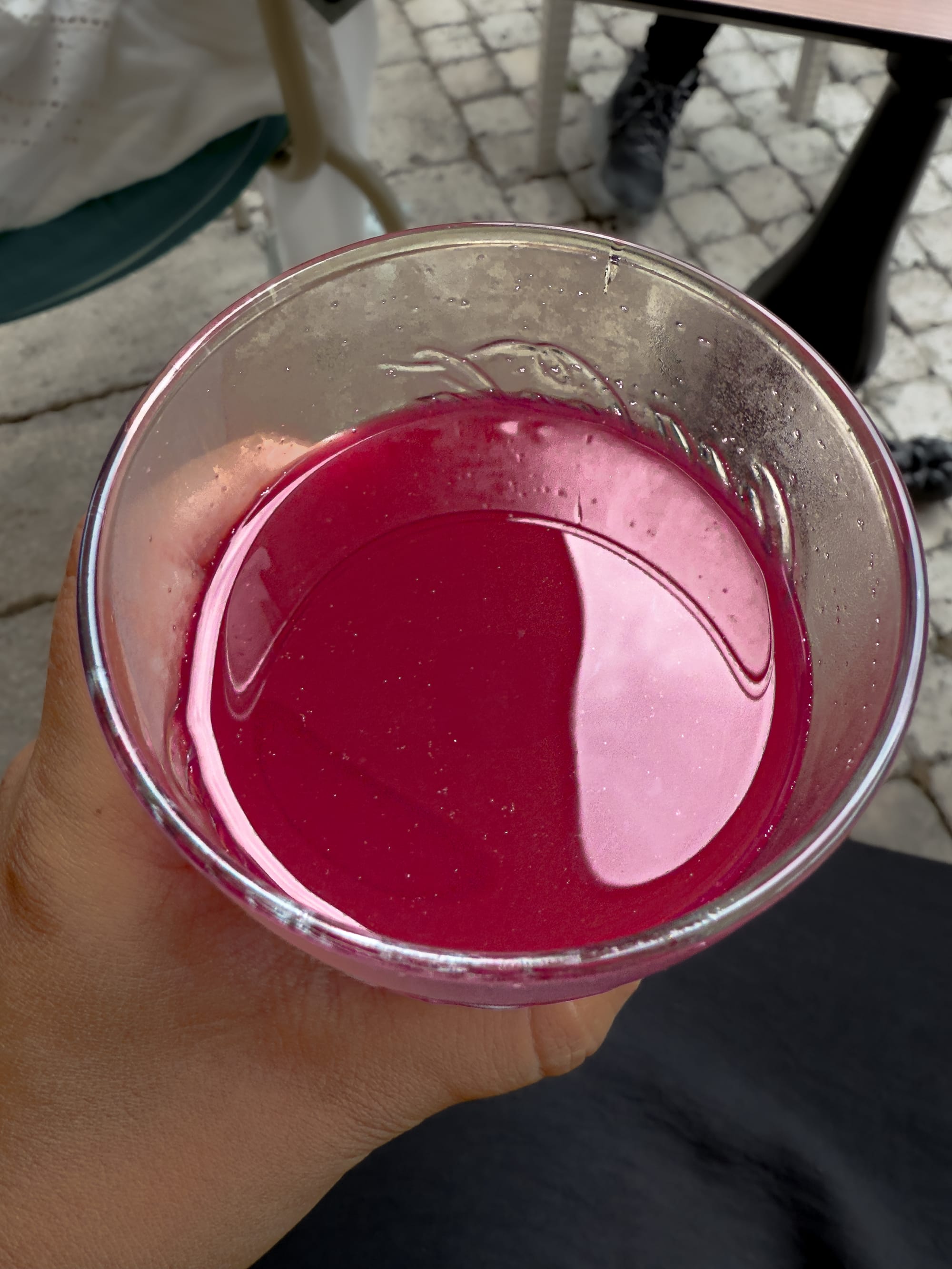 After exploring the ruins, we found a small juice stand and ordered fresh-squeezed pomegranate. Bright pink, sweet-tart, and slightly chilled—it was the perfect ending before the van rolled on.