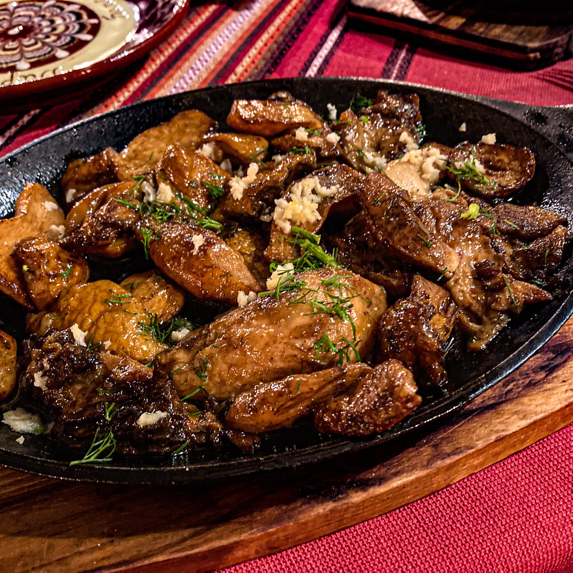 A lively, traditional spot often filled with music and dancing, Baryakova Tavern offers a vegetable sach and grilled wild mushrooms (ask for olive oil instead of butter if you're vegan).