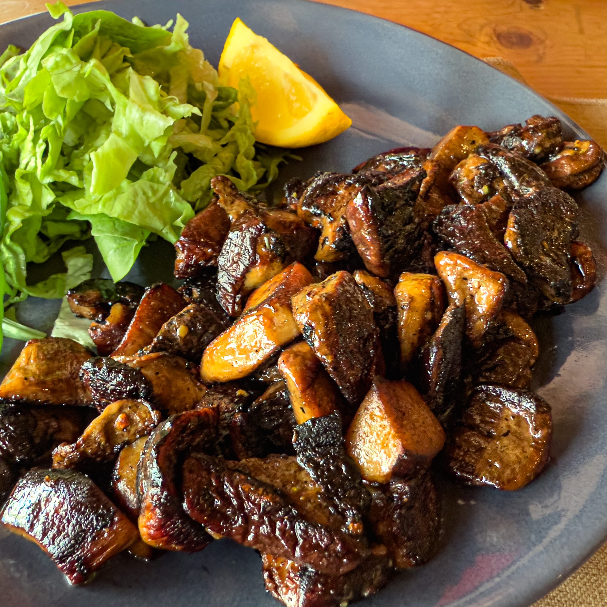 Known for its grilled meats, The Log House also offers excellent sautéed porcini mushrooms (you can ask for olive oil instead of butter), and a vegan burger. It’s a good mixed-group option if you’re looking for something simple and plant-based in a cabin setting.