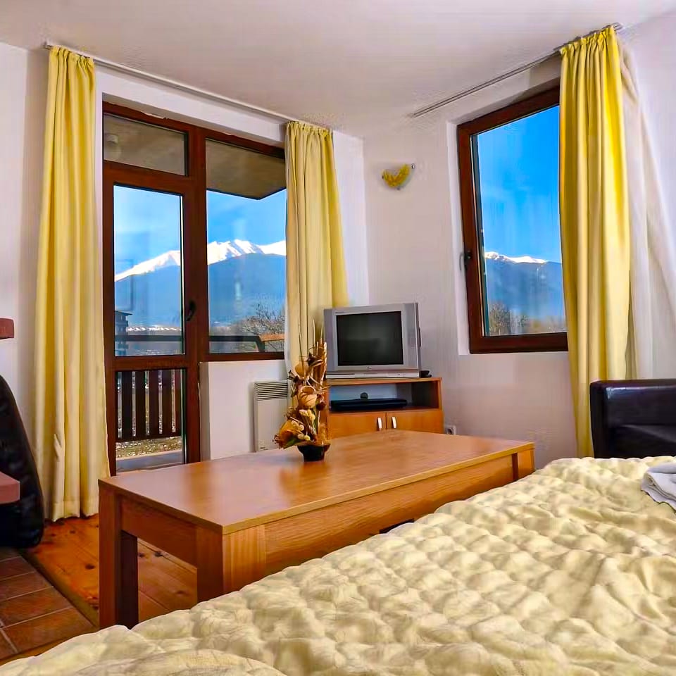 A stylish and compact one-bedroom apartment just steps from Bansko’s gondola. With a full kitchen, modern interiors, and a private balcony, it’s a comfortable choice for solo travelers or couples wanting independence without sacrificing convenience.