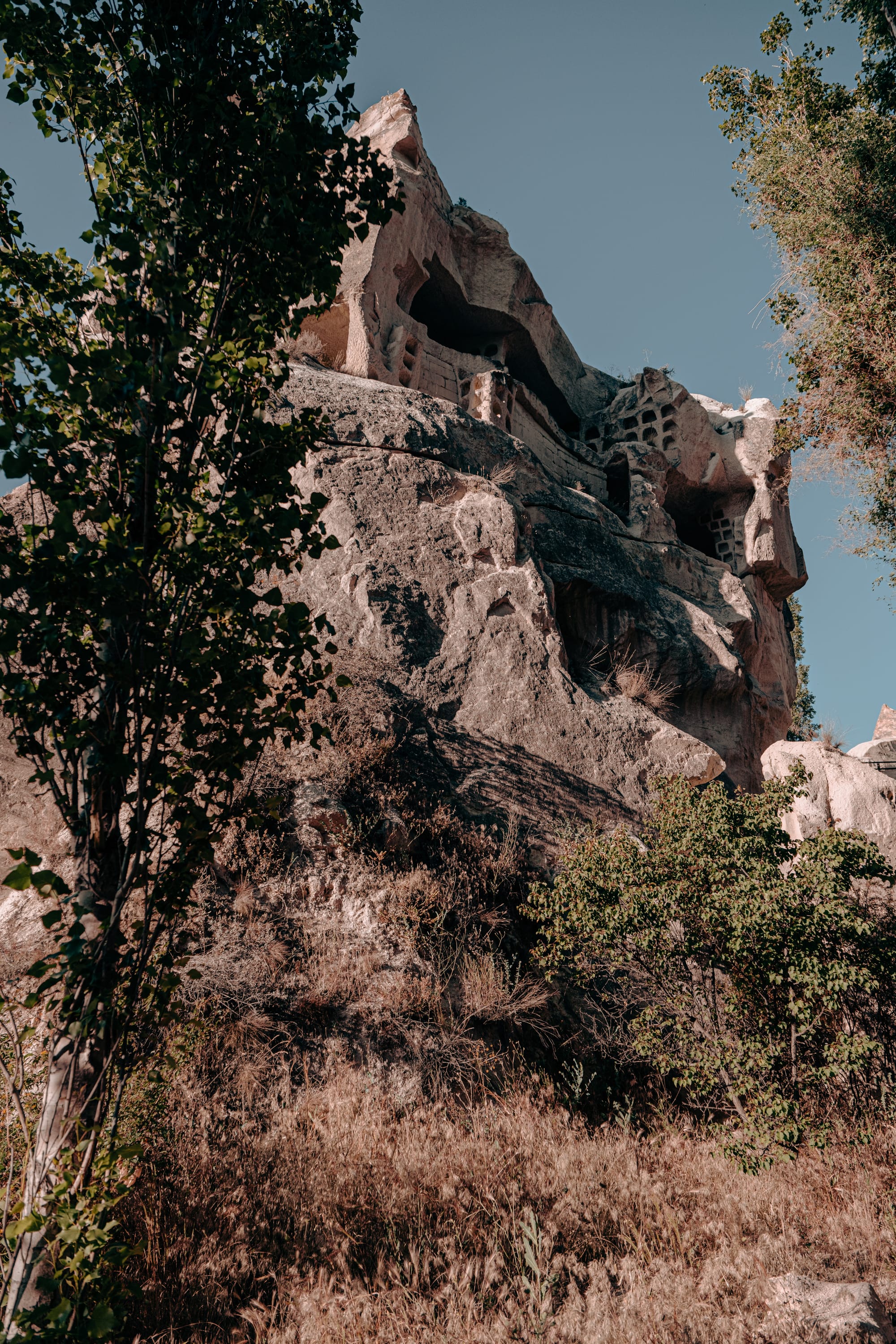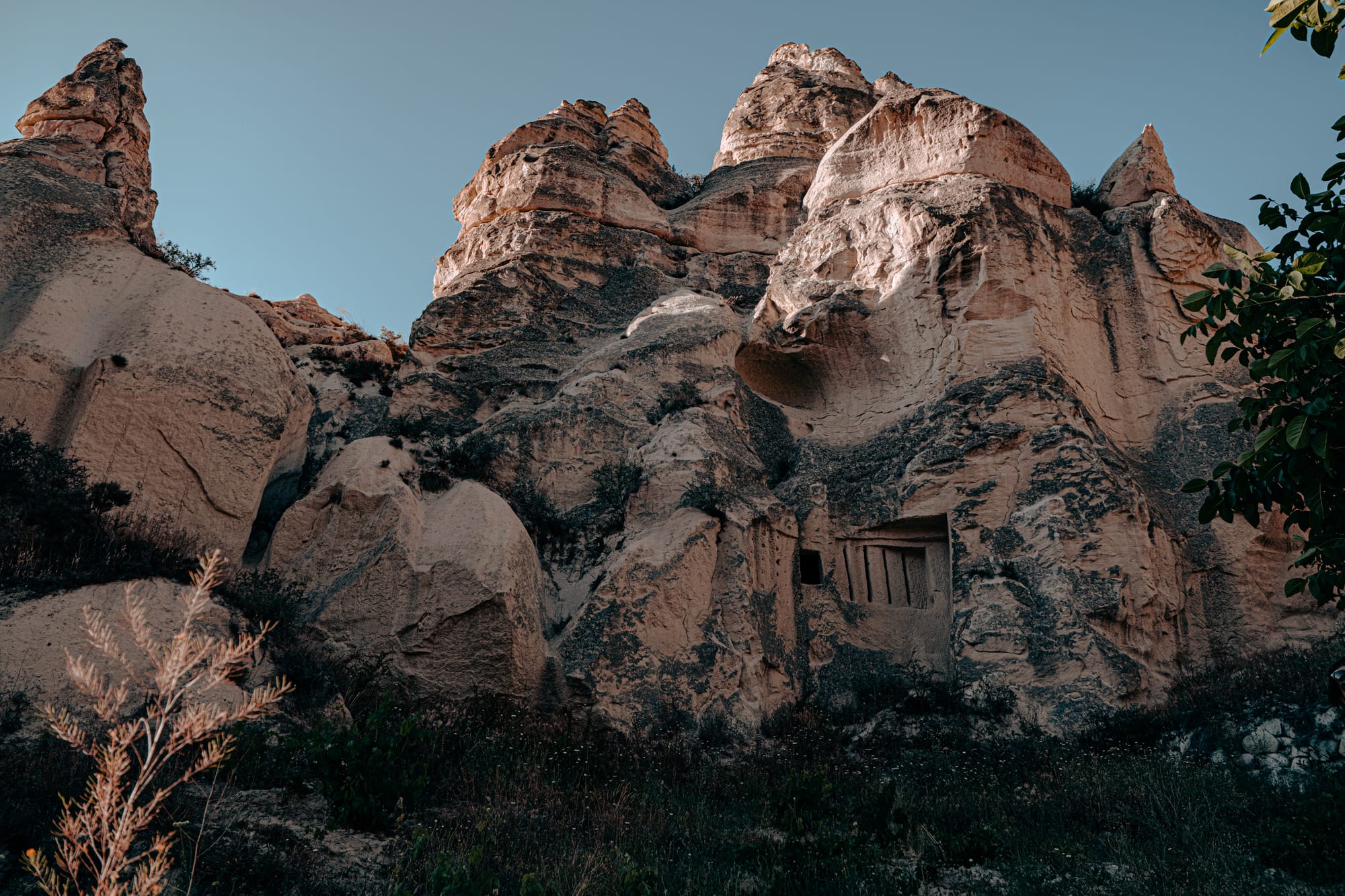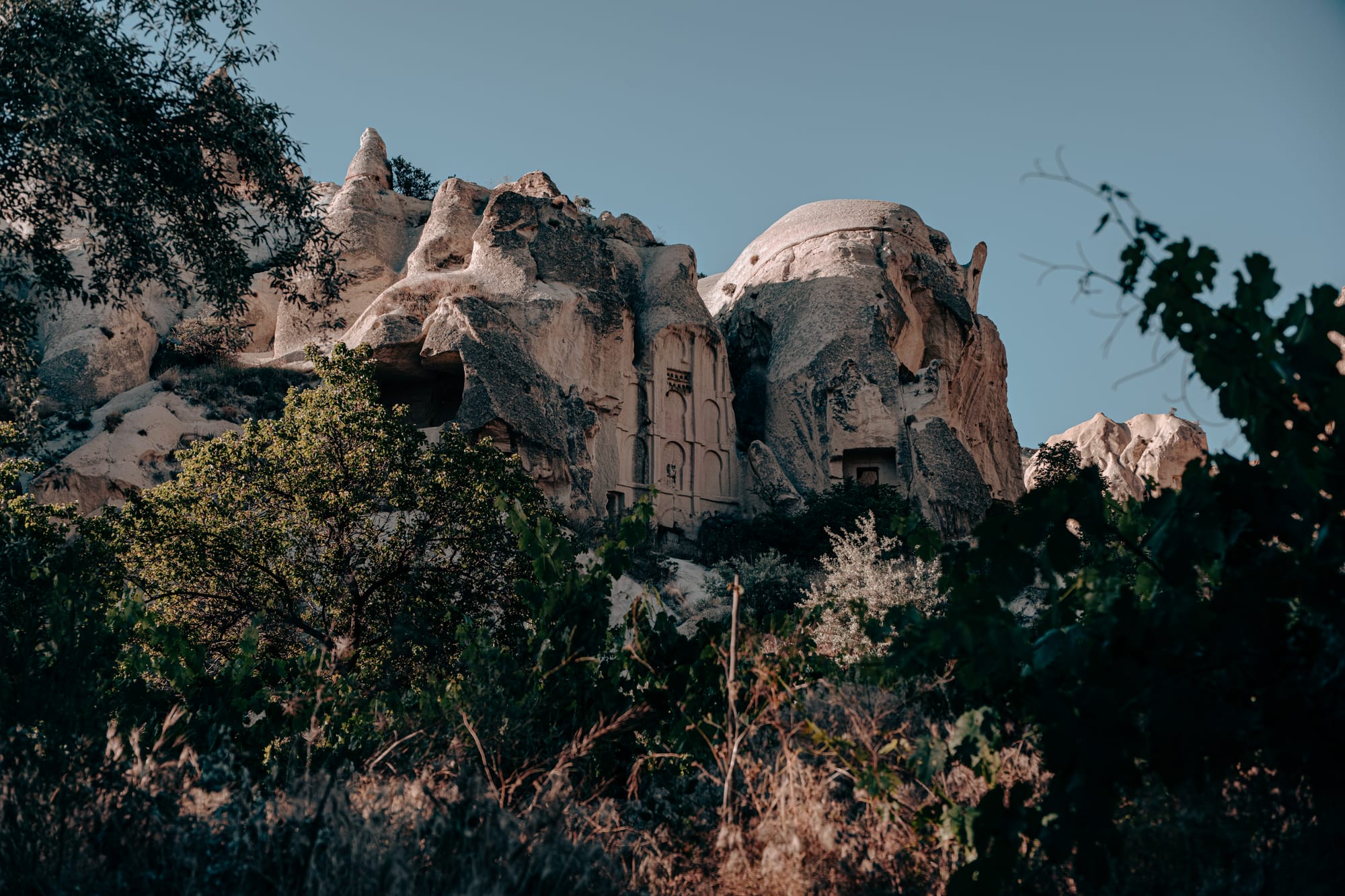Ancient cave dwellings carved into the rugged cliffs of Cappadocia