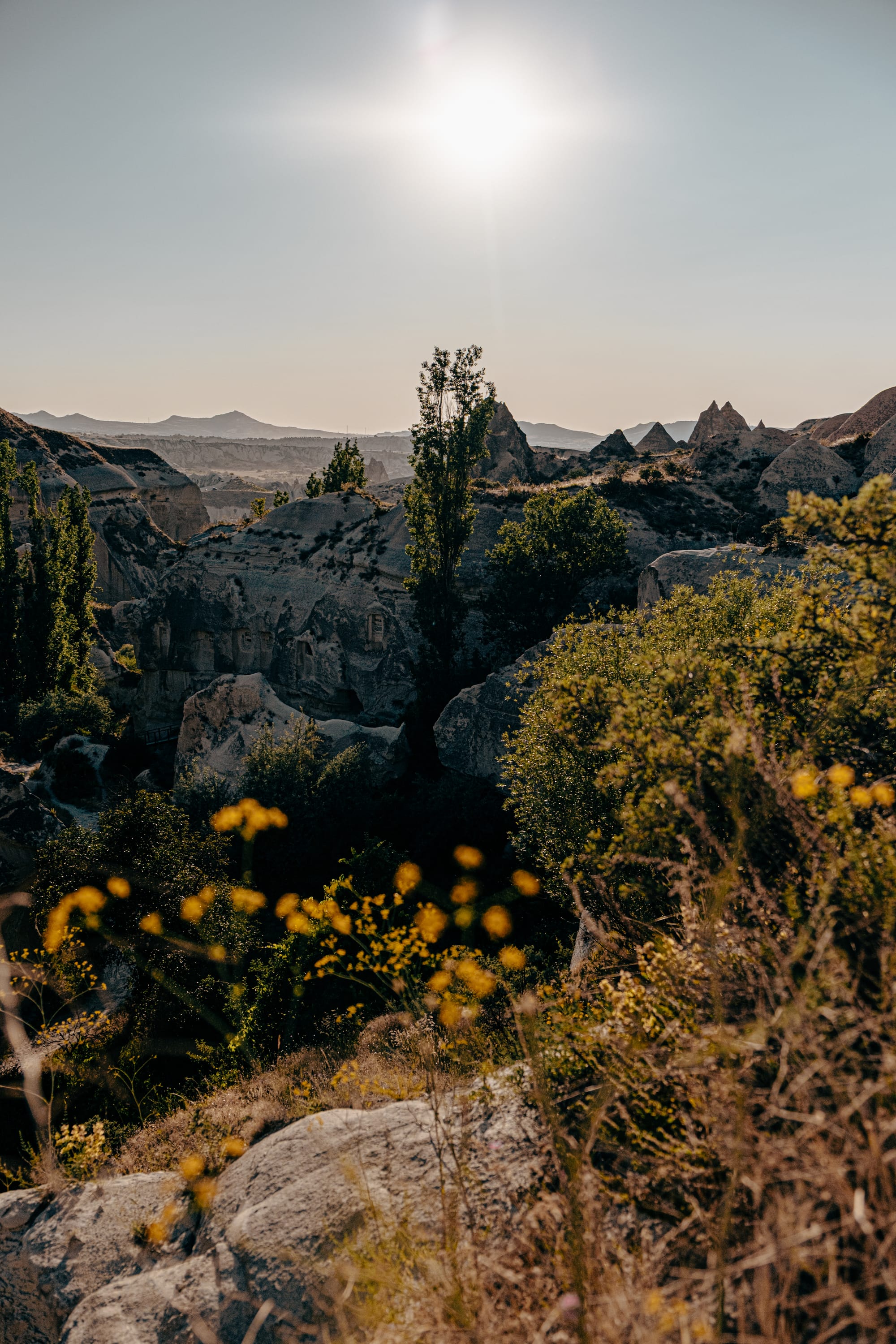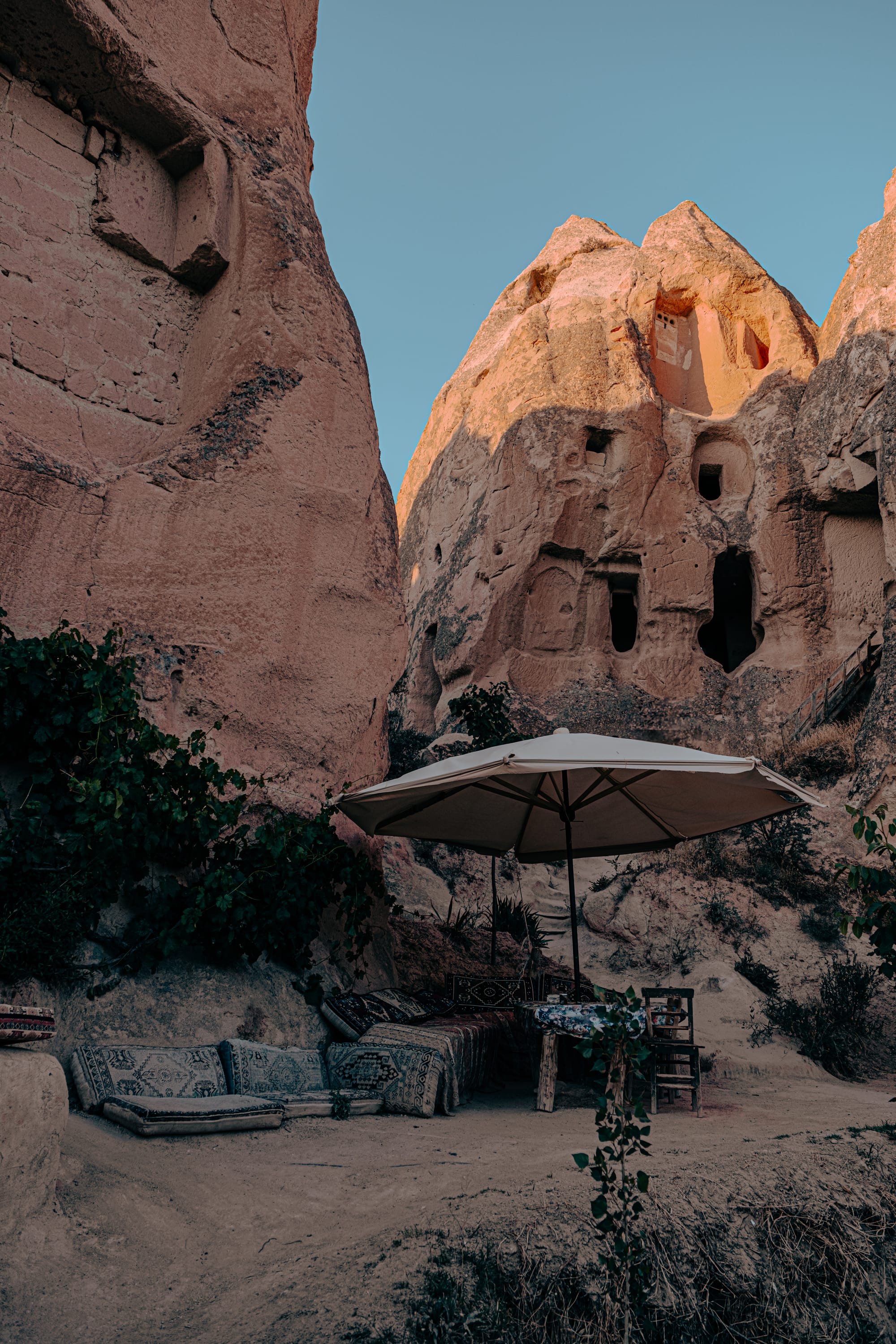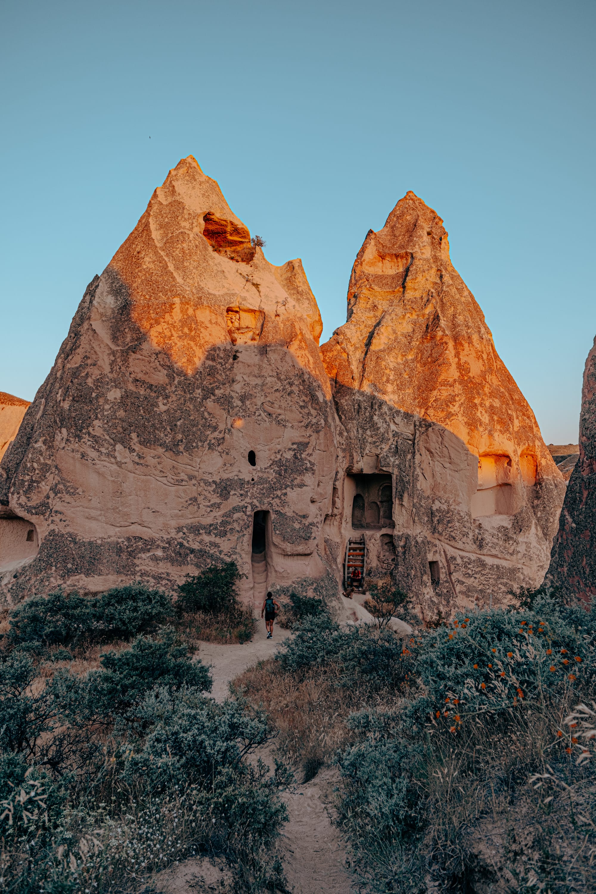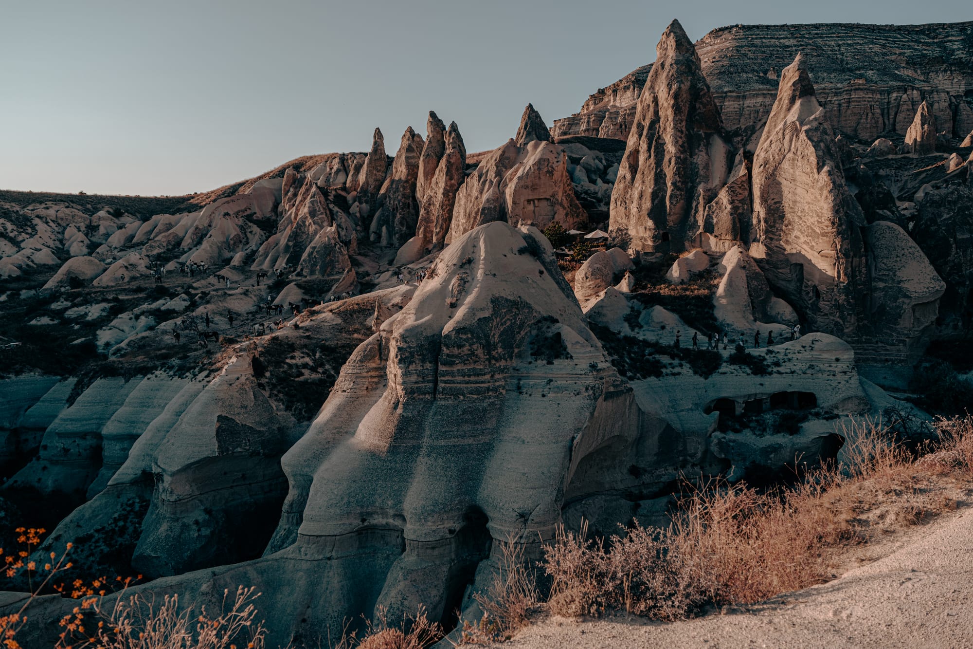 Ancient cave dwellings carved into the rugged cliffs of Cappadocia