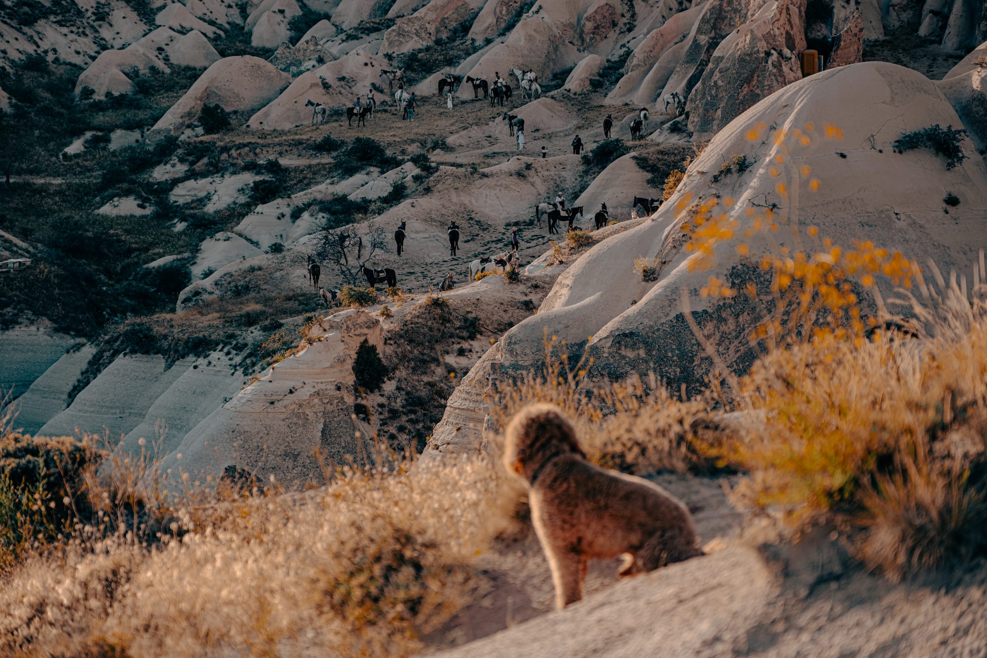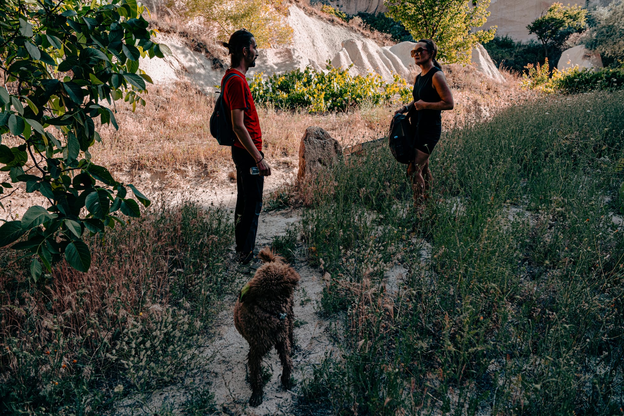 Oscar the dog enjoying the hike through Cappadocia’s stunning Red and Rose Valleys