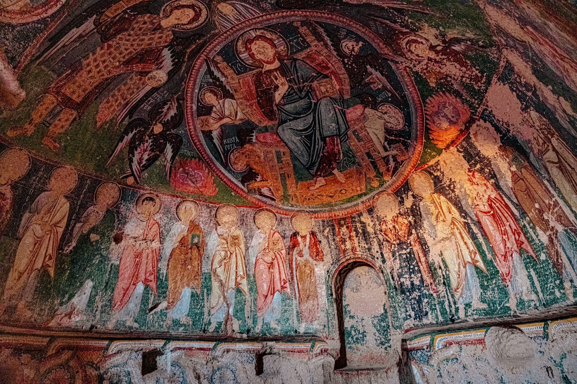 Farther on was Haçlı Kilise, also known as the Cross Church, where the ceiling boasts an expertly carved stone cross surrounded by a large apse painting of Christ in Glory.
