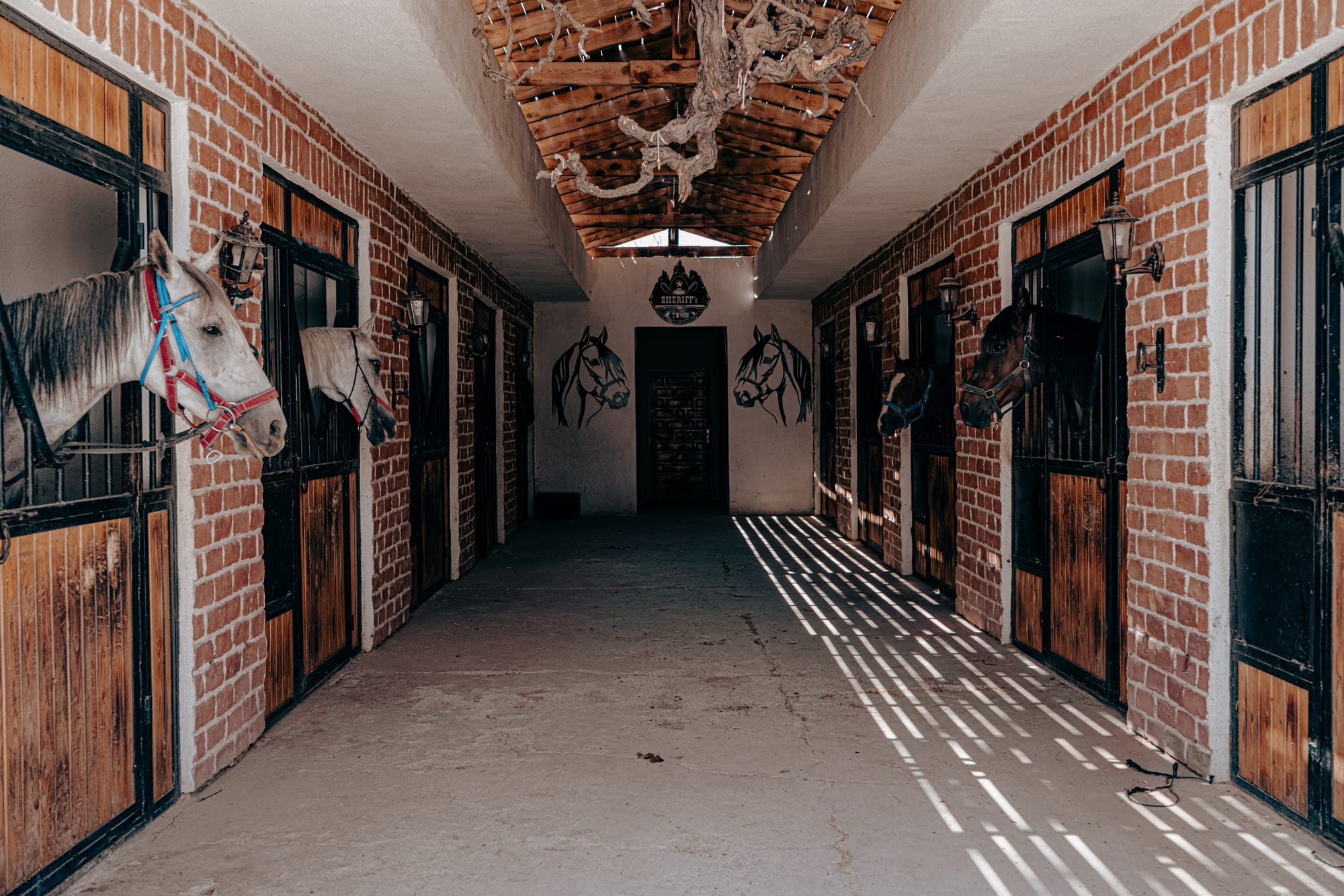 Rows of saddles hang in shadowed corners, their worn leather carrying the marks of long use.