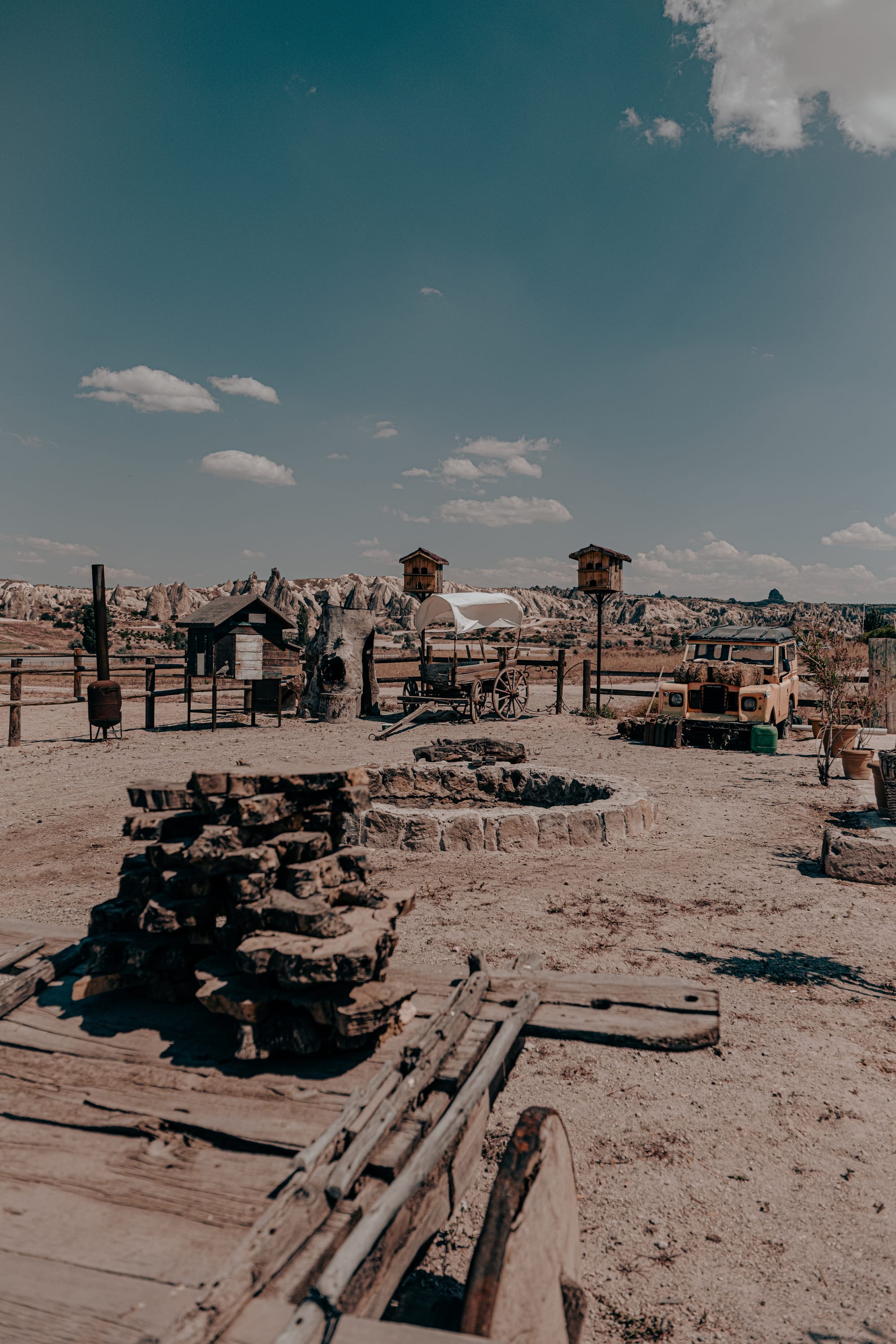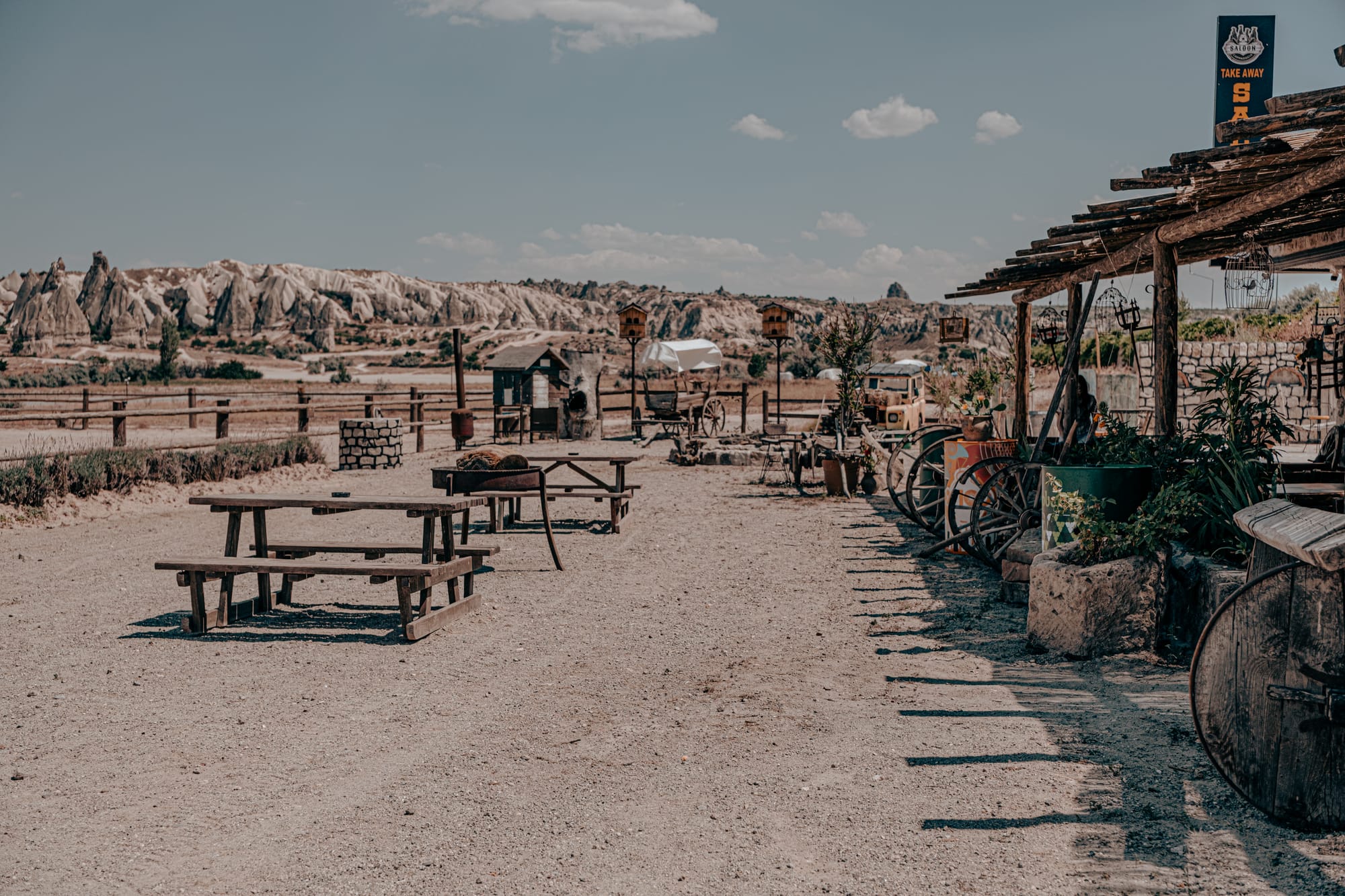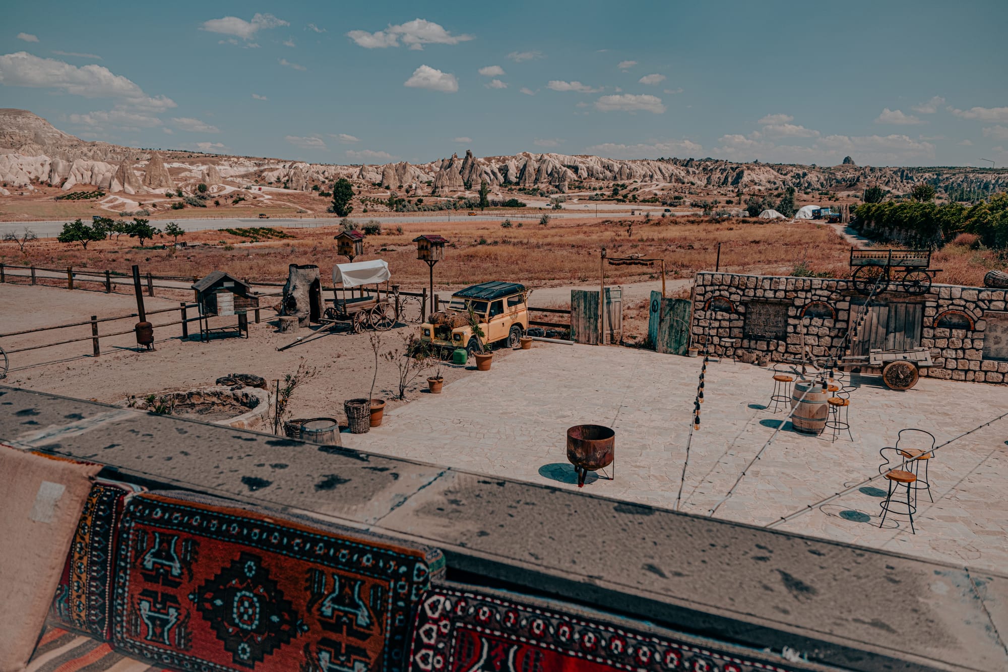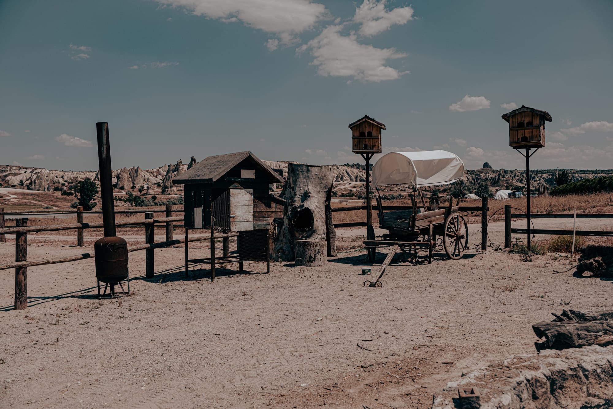 Part of Moonlight Ranch’s appeal lies in its mix of western and Cappadocian influences. The architecture recalls frontier towns, but the setting—ringed by tuff stone cliffs and open plains—is uniquely Anatolian. Props that might seem staged elsewhere feel naturally at home here: vintage wagons loaded with hay, weathered gates that creak as they swing open, and stretches of corral fencing that look out toward uninterrupted wilderness.