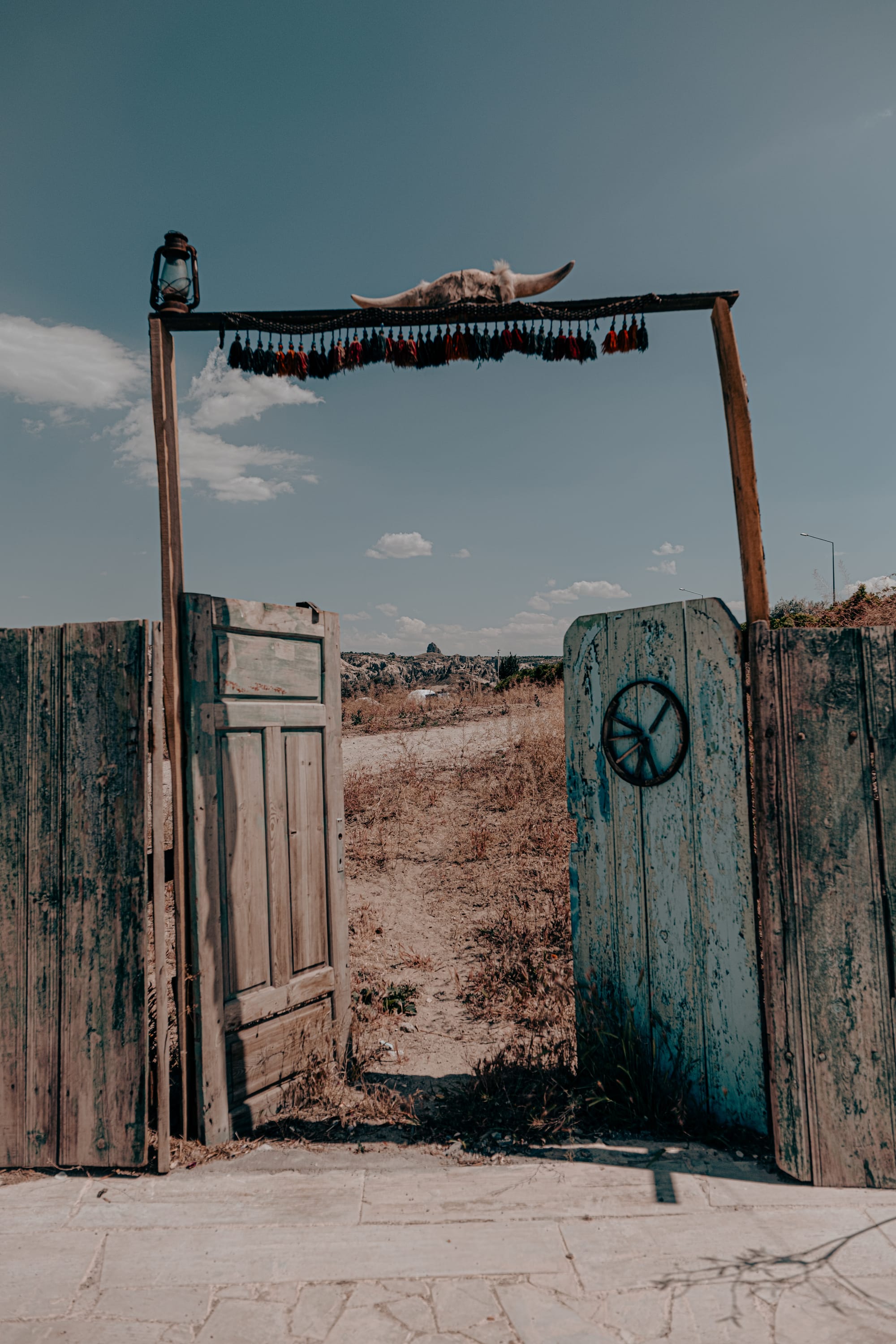 Details of rustic fencing, wagon wheels, and decor at Moonlight Ranch in Cappadocia