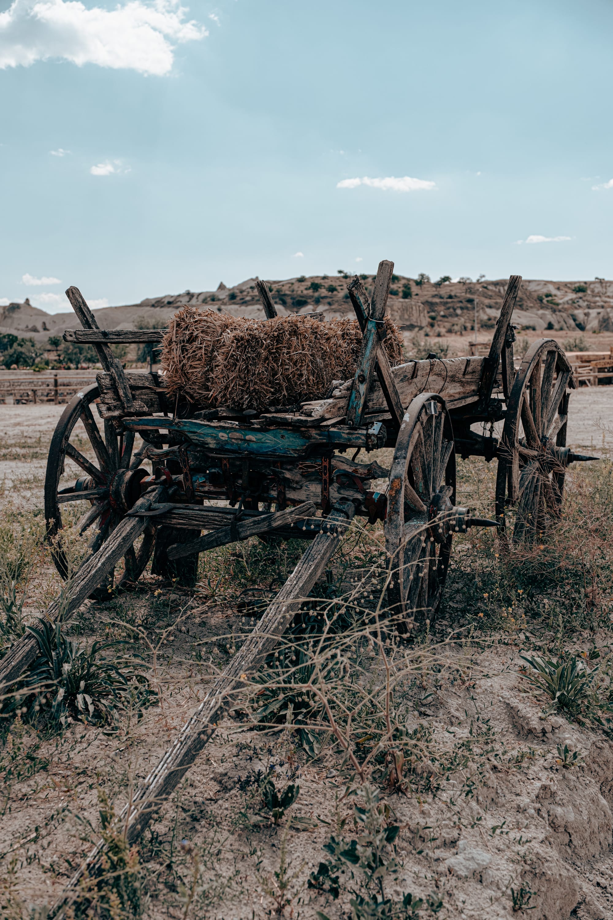 Weathered wagon and traditional horse tack at Moonlight Ranch