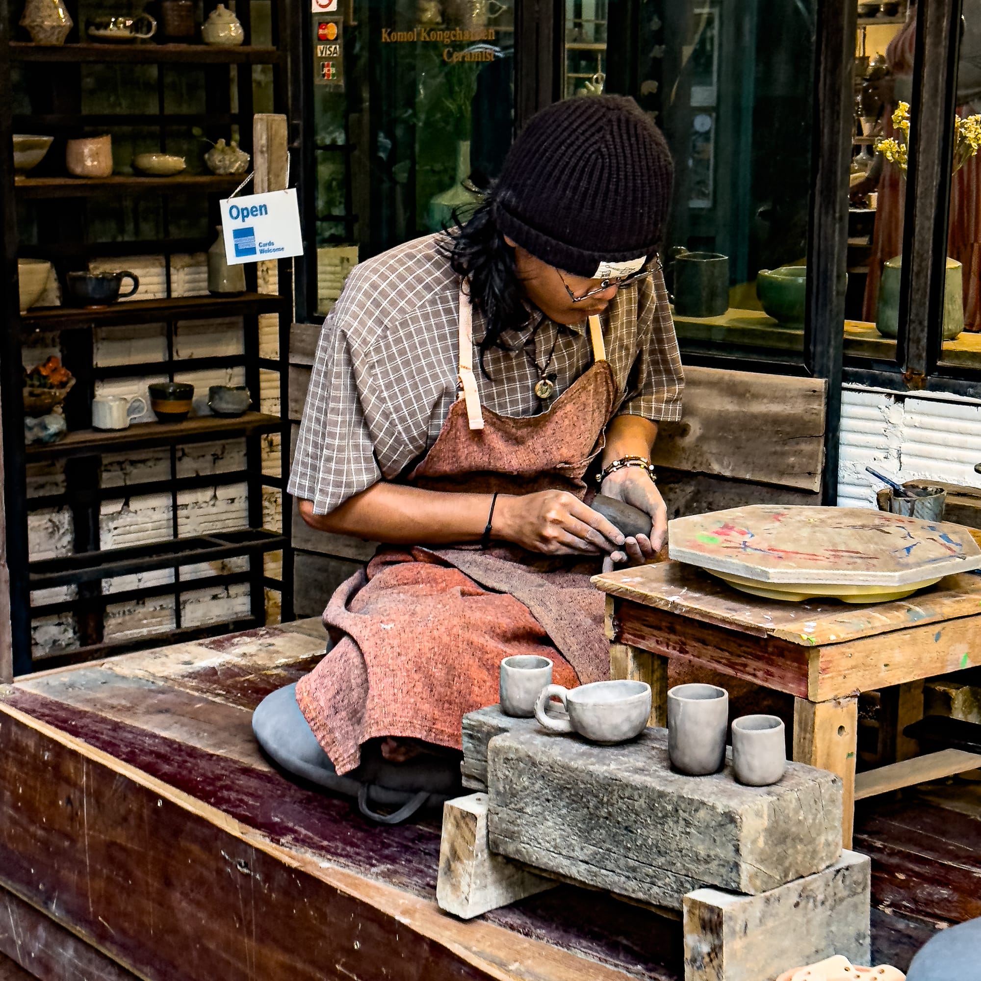 A creative village west of the Old City, Baan Kang Wat brings together artists and makers in a leafy courtyard setting. You’ll find ceramics, textiles, prints, and handmade goods, alongside coffee shops and weekend workshops. It’s a calm, community-focused spot. Read our post.