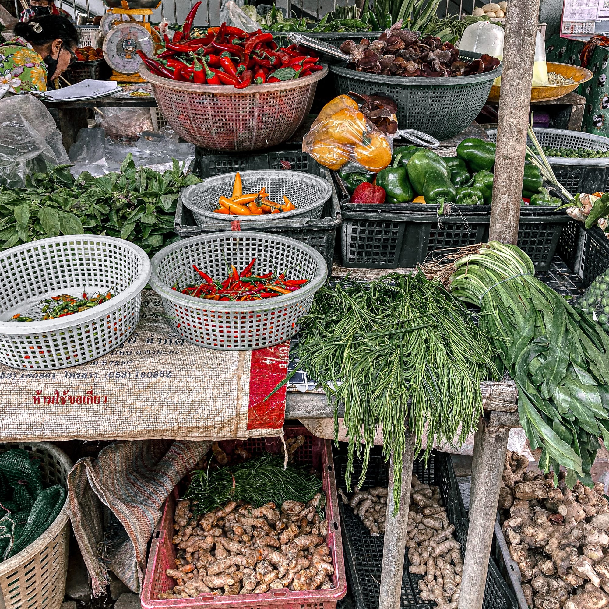 Northwest of the Old City, this local market runs from around 7–11am. Stalls sell fresh vegetables, herbs, flowers, and everyday goods, alongside hot breakfasts and street food. We especially love the cacao stall. It's calmer and smaller-scale than most other markets in Chiang Mai. Read our post.
