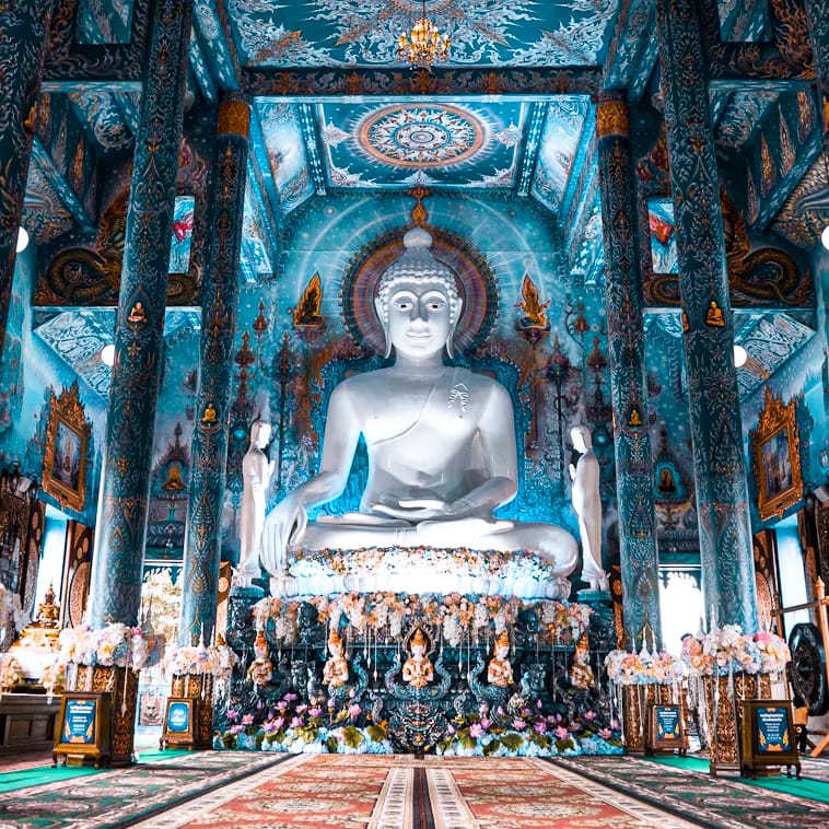 A few hours north of Chiang Mai, Chiang Rai is best known for its striking temples. The White Temple (Wat Rong Khun) is a surreal mix of Buddhist symbolism and contemporary art, while the Blue Temple (Wat Rong Suea Ten) glows with deep cobalt interiors. Photo credit.