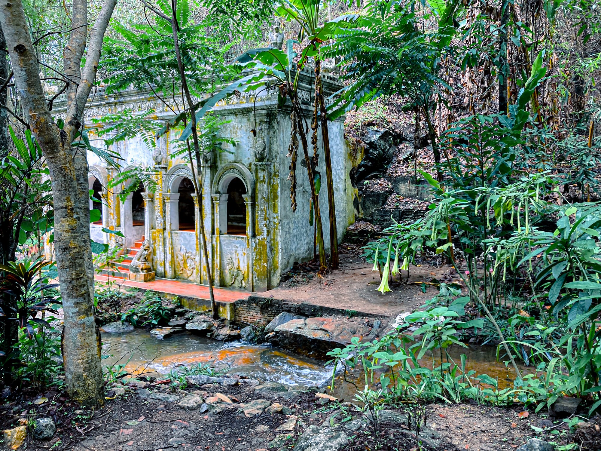 Wat Pha Lat is not crowded with tourists, which makes the experience feel even more intimate. Sitting on a worn stone bench, you can hear the stream that runs through the temple grounds and gaze out across Chiang Mai far below.