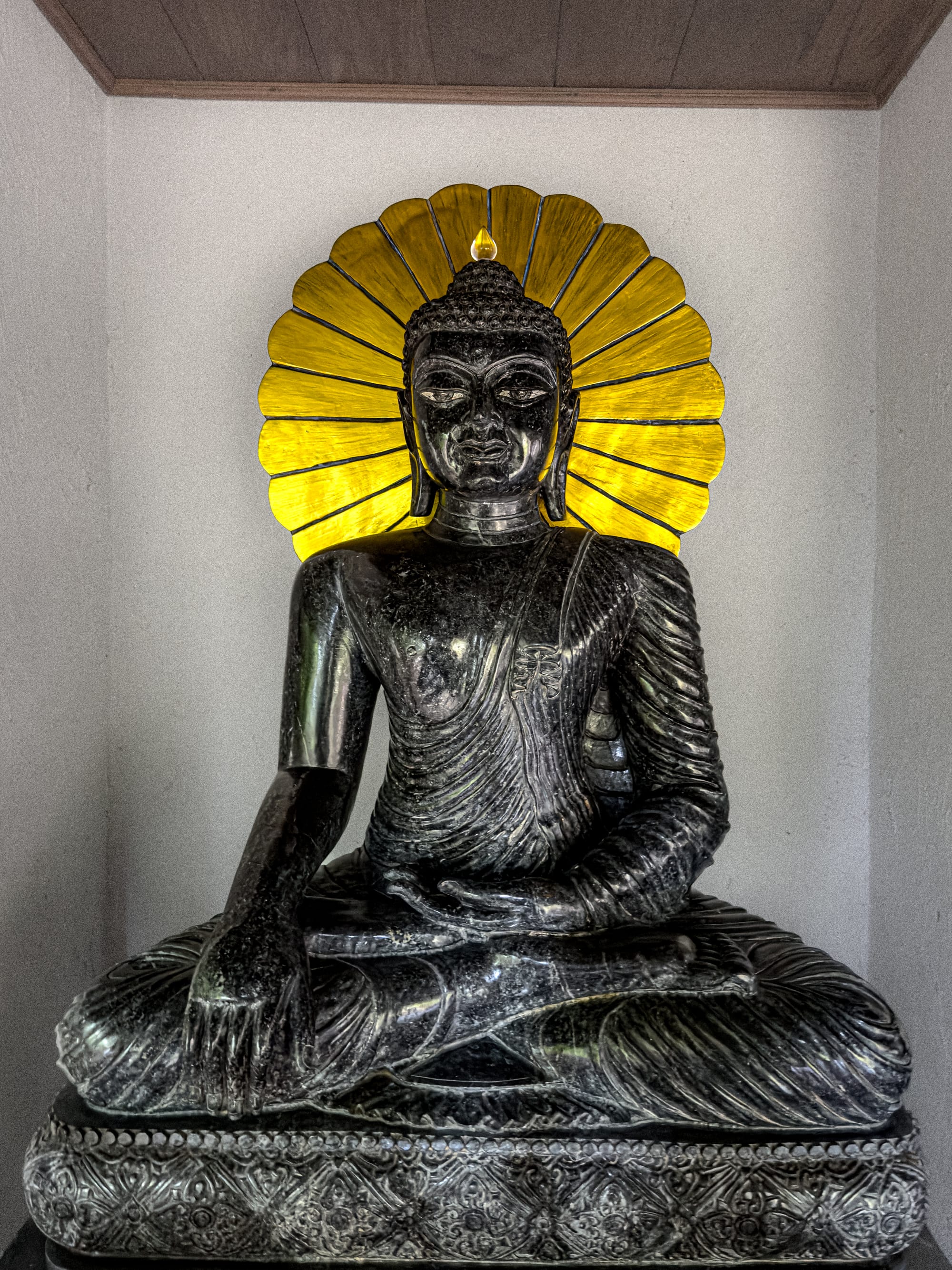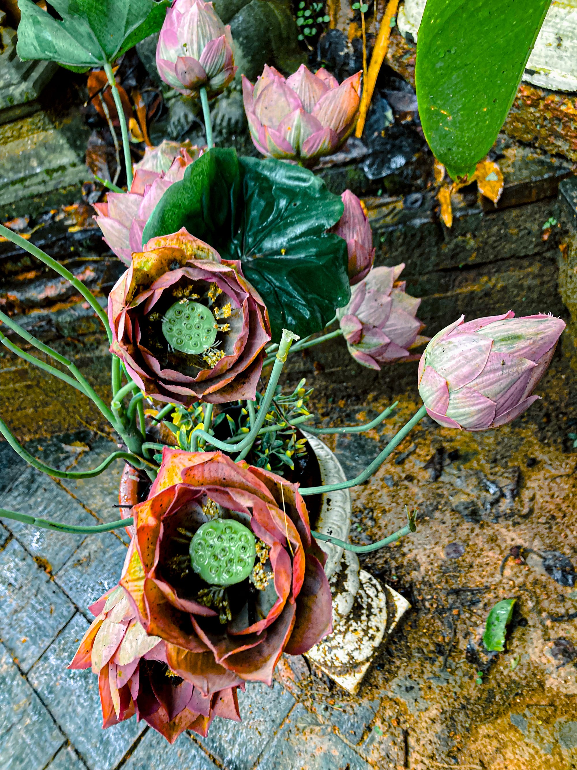 Monks move about the grounds softly, their saffron robes a striking contrast against the jade-green foliage and gray stone. Sometimes they tend to the gardens, sometimes they sit in meditation by the pond, their presence grounding the space in living practice.