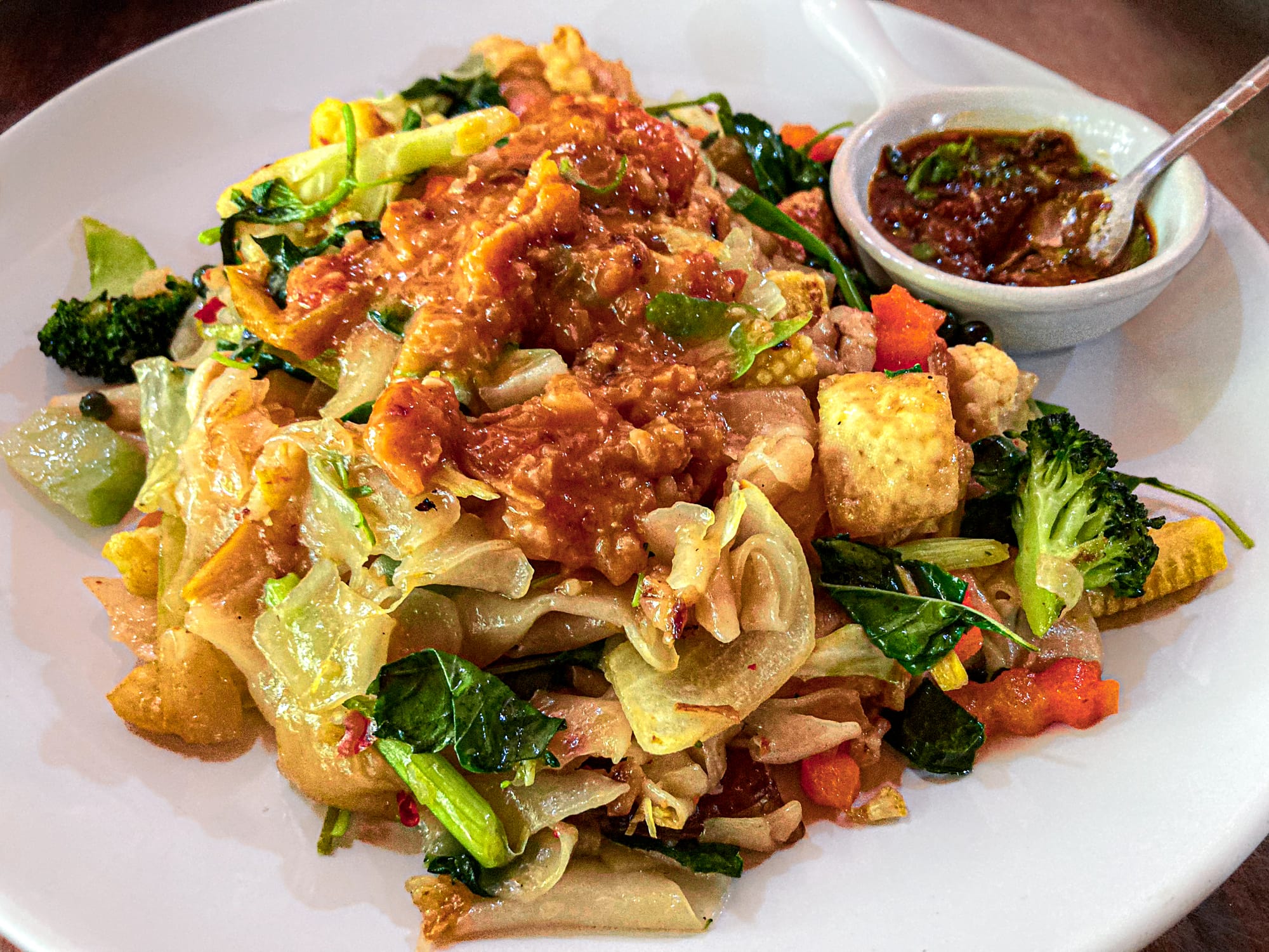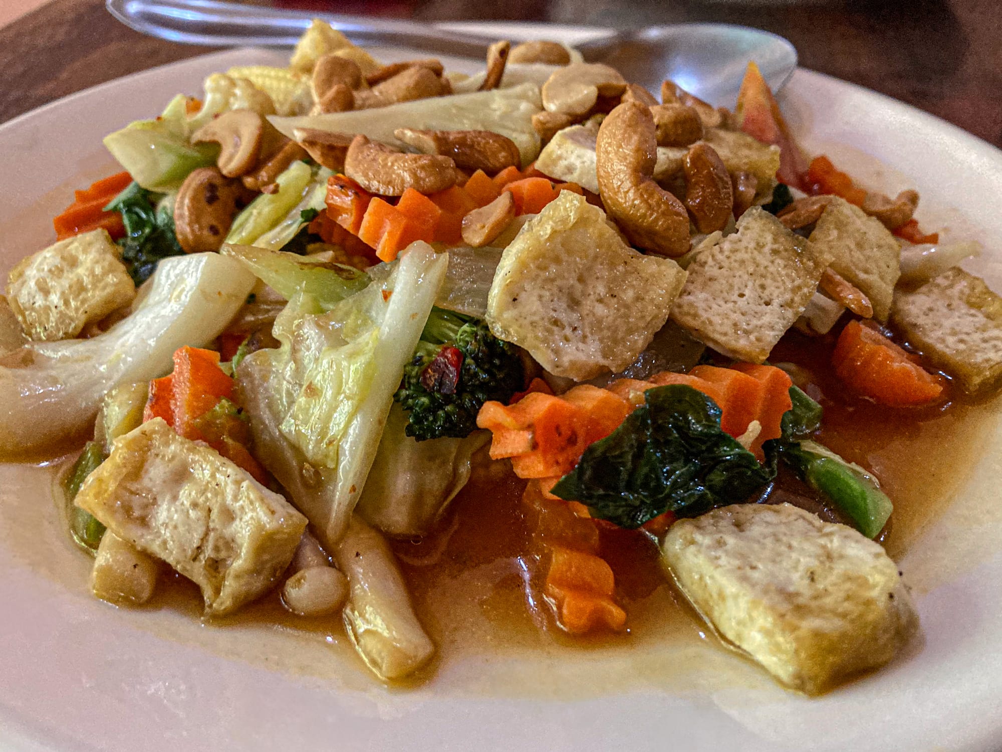 Having enjoyed the cooking class so much, the Chiang Mai restaurant ended up becoming one of our local favorites. The menu moves elegantly through salads, curries, noodles, and soups, each deeply rooted in Thai regional flavor but reimagined entirely via plants.