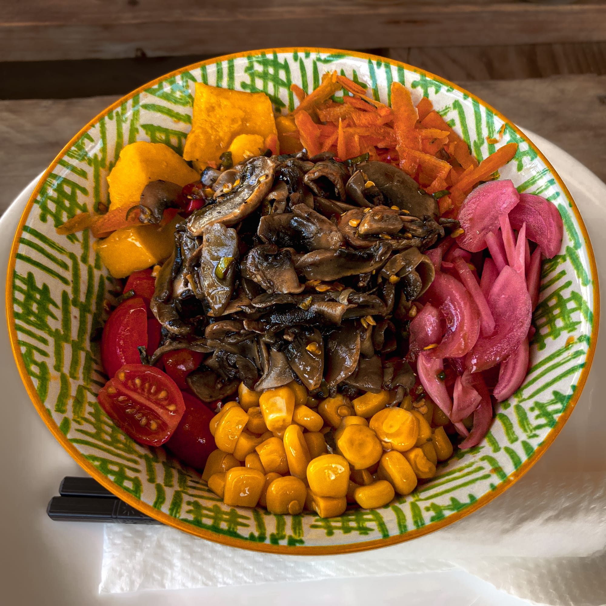 Pita Pan was a favorite of ours with excellent fresh juices and a range of vegan options. Our dish of choice was the roasted cauliflower salad with spiced chickpeas, red onion, cashews, and herbs, tossed in a citrus tahini dressing.