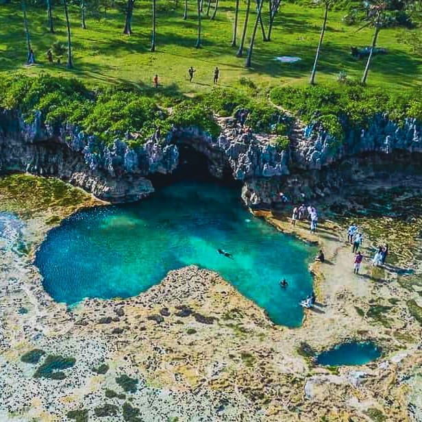 The Africa Pool is a tidal rock pool naturally shaped like the African continent, located near Tiwi Beach. Only visible at low tide, it’s a unique spot to take a dip and observe small marine life in the clear water. Photo credit.