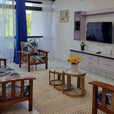 A spacious one‑bedroom apartment just steps from Ukunda Airport and Skippers Coliving. It includes a kitchenette, living room, terrace with garden views, and wifi.