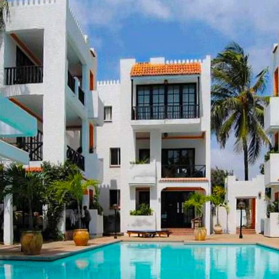 Close to Baharini Shopping Complex, Diani Pearl offers air-conditioned apartments blending traditional Lamu architecture with modern kitchens, balconies or patios, and access to two outdoor pools set in landscaped gardens. Their rooftop terrace has Indian Ocean views.
