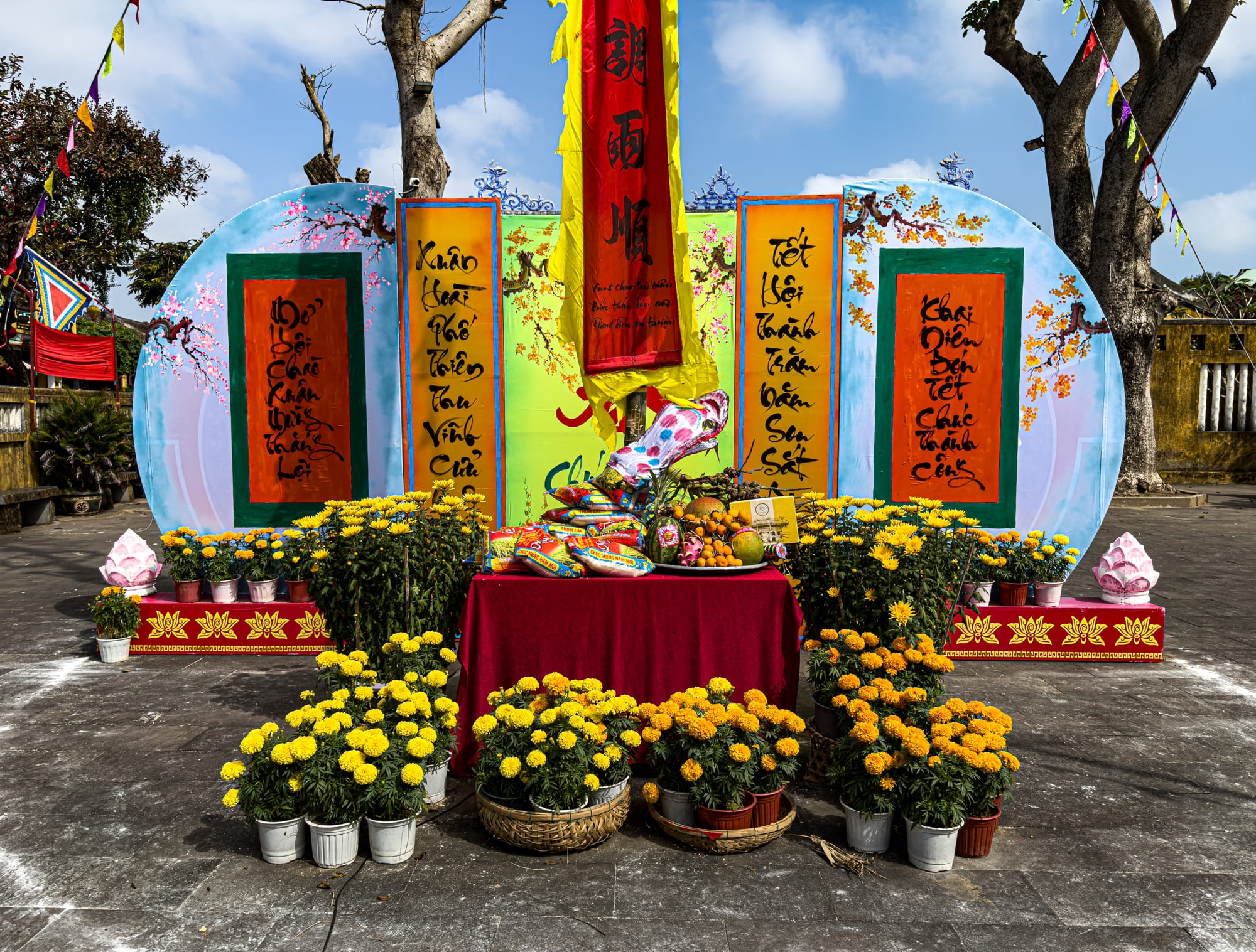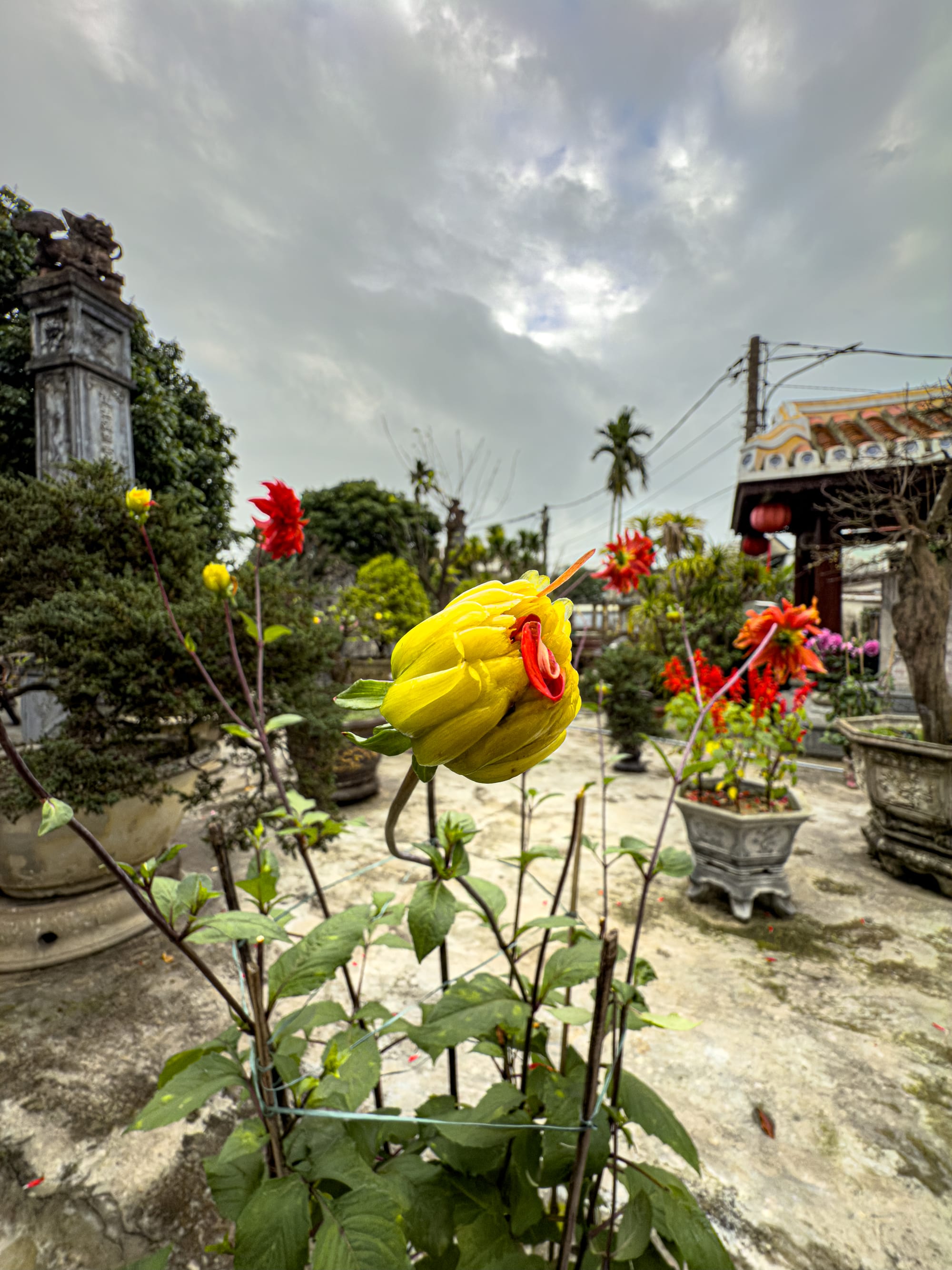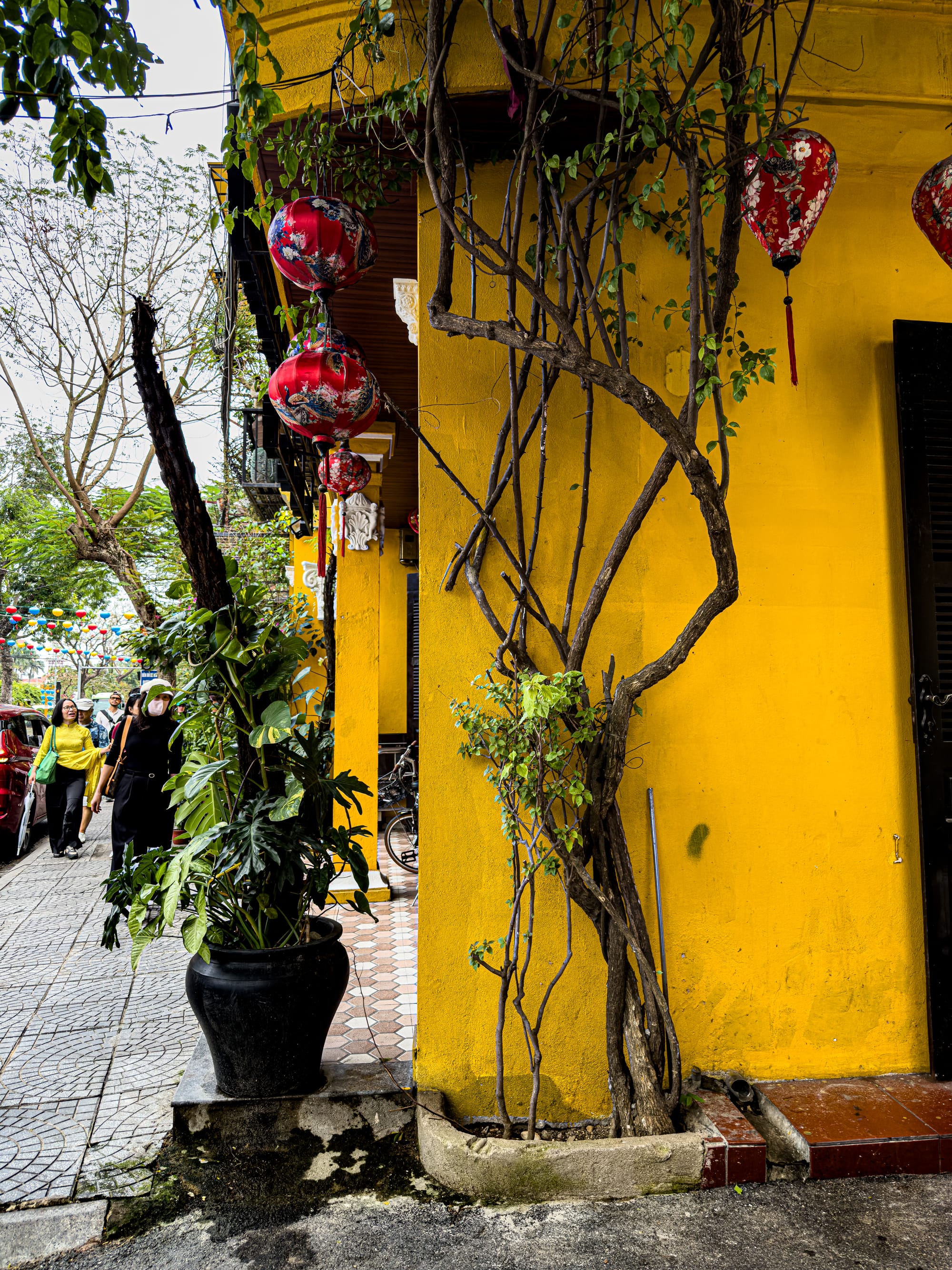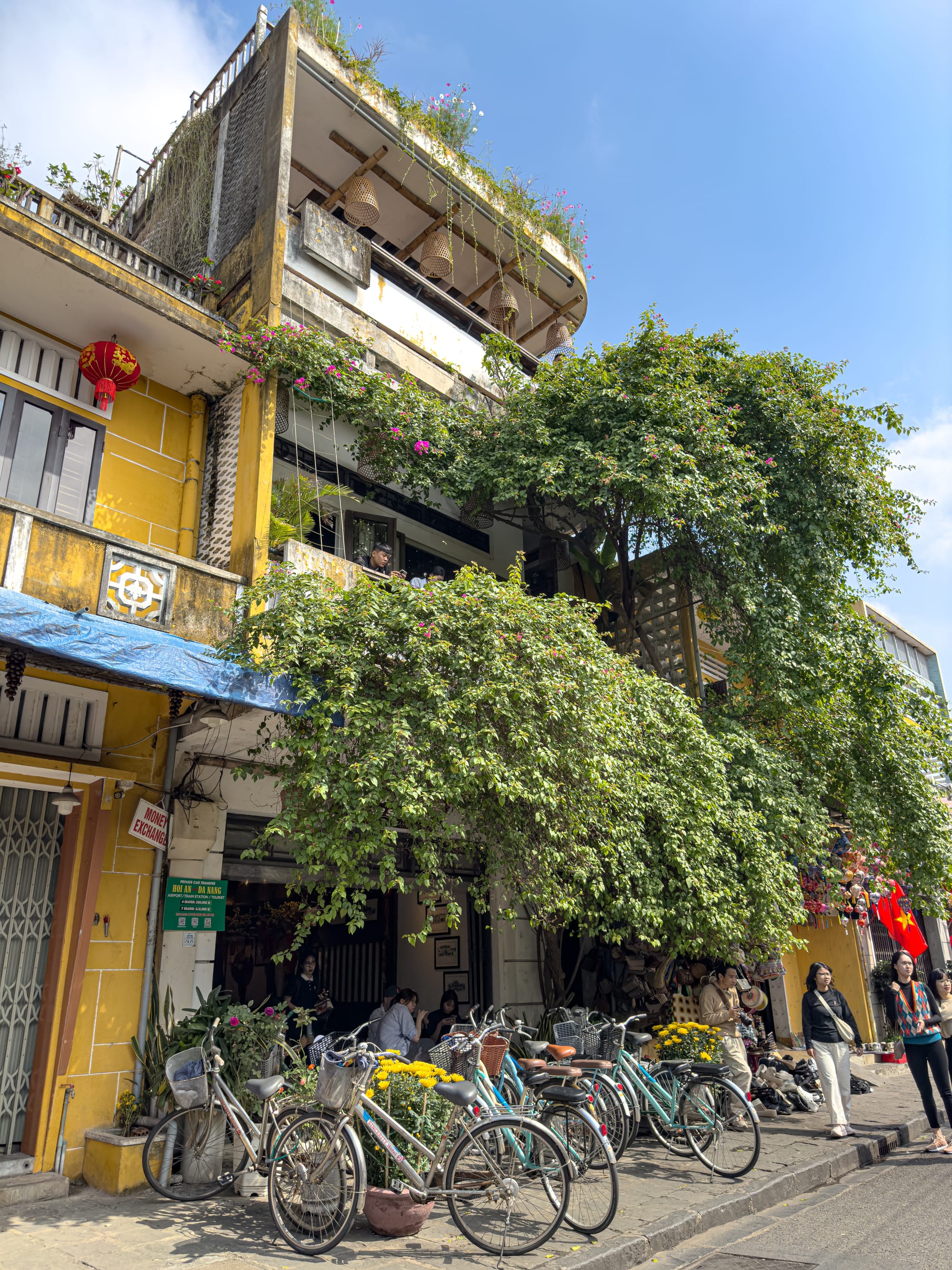 Gardens and temple courtyards in Hội An’s Old Town bloom with flowers, bonsai, and centuries-old trees