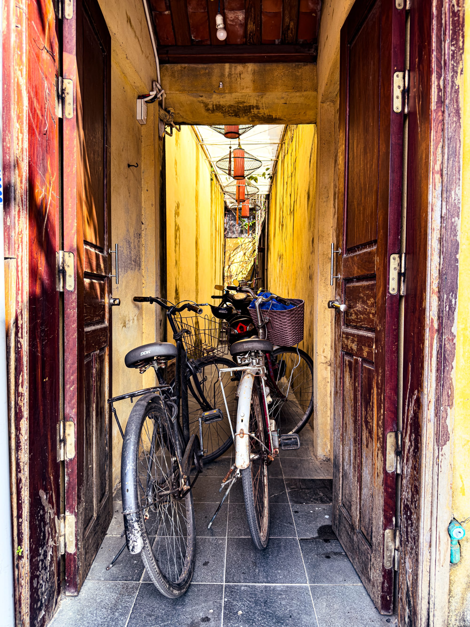 Everyday life in Hội An’s Old Town, from bicycles tucked in golden alleyways to vibrant tailor shop streets