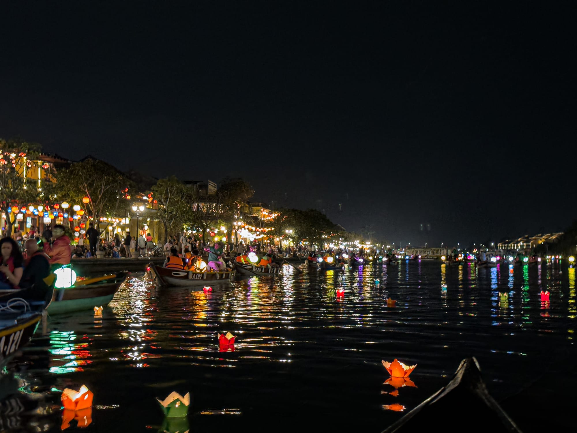 The Thu Bồn River sparkles with lantern boats and floating wishes during Hội An’s magical nights