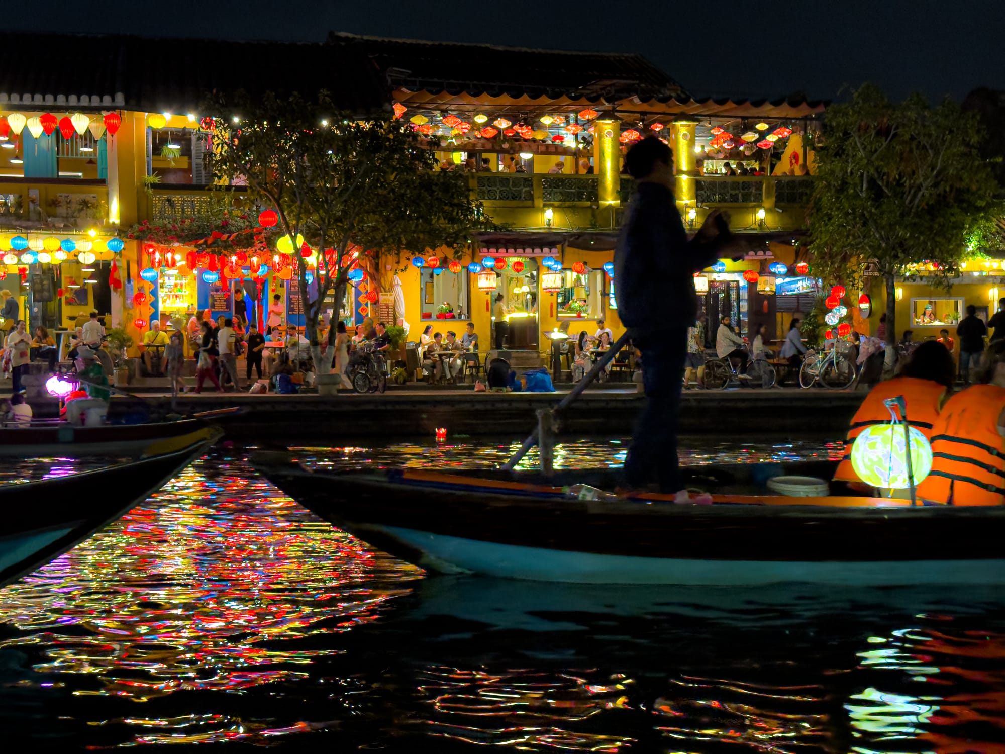 Evenings in Hội An’s Old Town glow with lanterns as streets, cafes, and riverside pathways fill with life