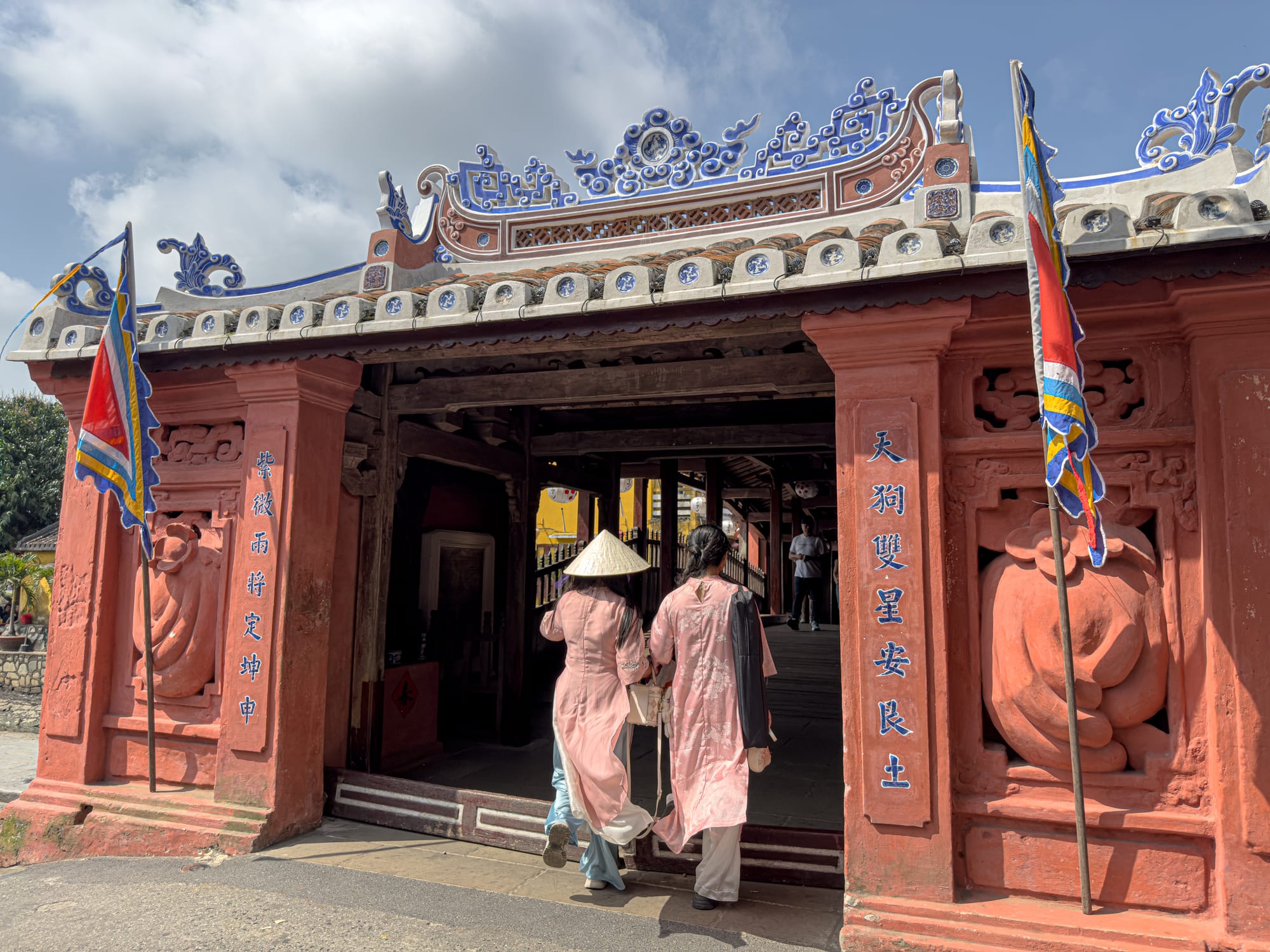 The Japanese Covered Bridge, or Chùa Cầu, is one of Hội An’s most iconic landmarks. Built around 1593 by the Japanese community that had settled in Hội An, the bridge was both practical and symbolic. It connected the Japanese quarter on the western side of the town with the Chinese quarter on the eastern side, serving as a literal bridge between two powerful communities that defined Hội An’s prosperity. Its roof provided shelter from sun and rain, while its design reflected Japanese aesthetics infused with local Vietnamese influences.
