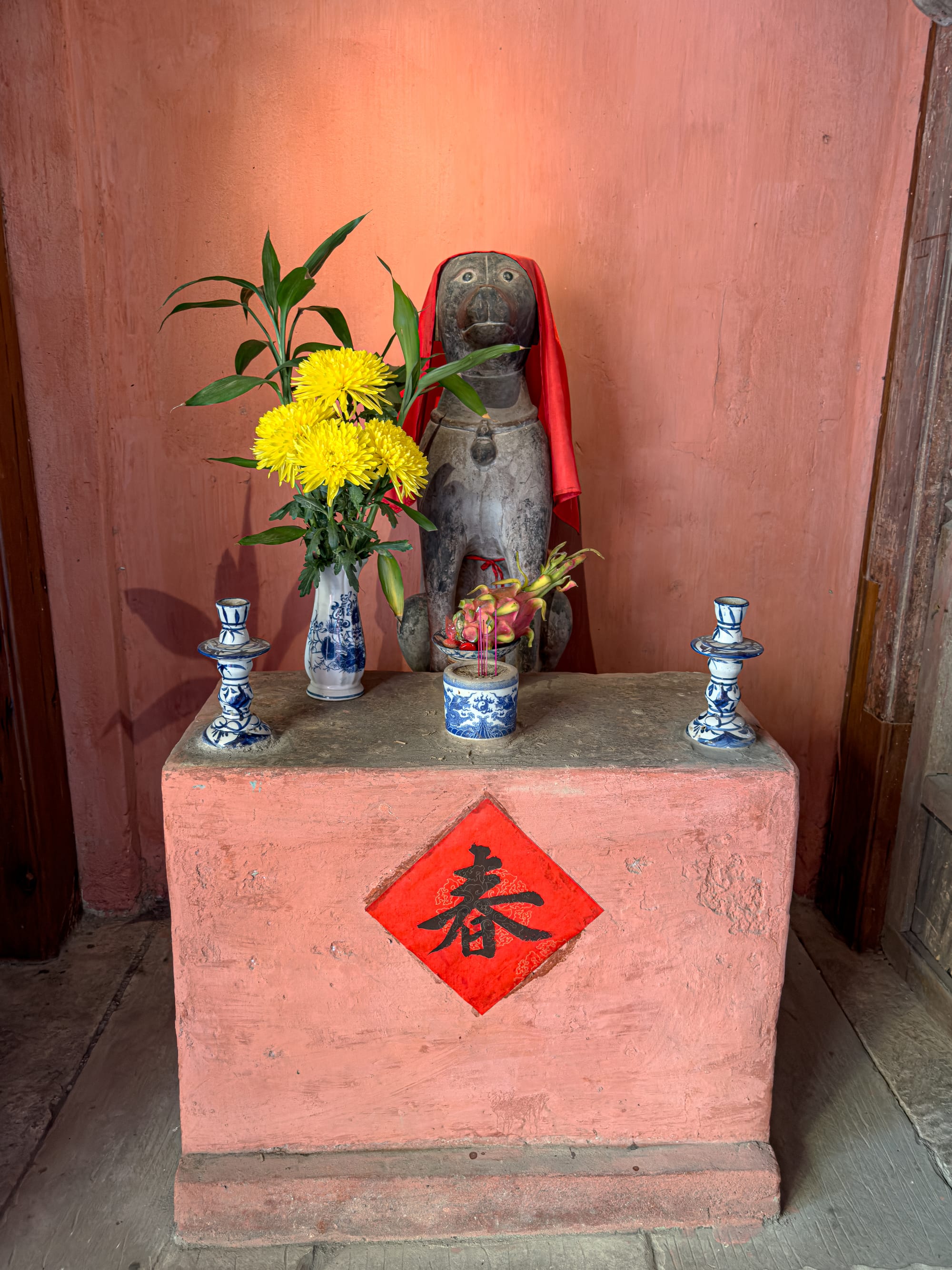 The bridge is guarded by statues of monkeys on one side and dogs on the other. Scholars suggest this may reference the years in which its construction began and ended according to the Chinese zodiac. Others see them as protective symbols, guardians of a space meant for unity and crossing. Inside the bridge is a small temple dedicated to the northern deity Trấn Vũ, believed to protect against natural disasters. This gave the bridge not only a functional role but also a spiritual one: a place of safety, blessing, and continuity.