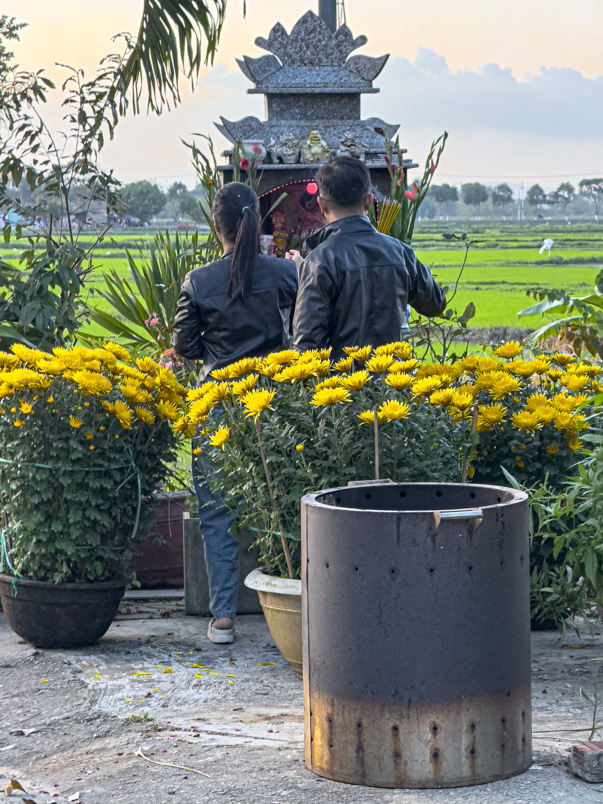 Offerings at a shrine and flooded paddies reflect the spirit and labor of Hội An’s rice fields