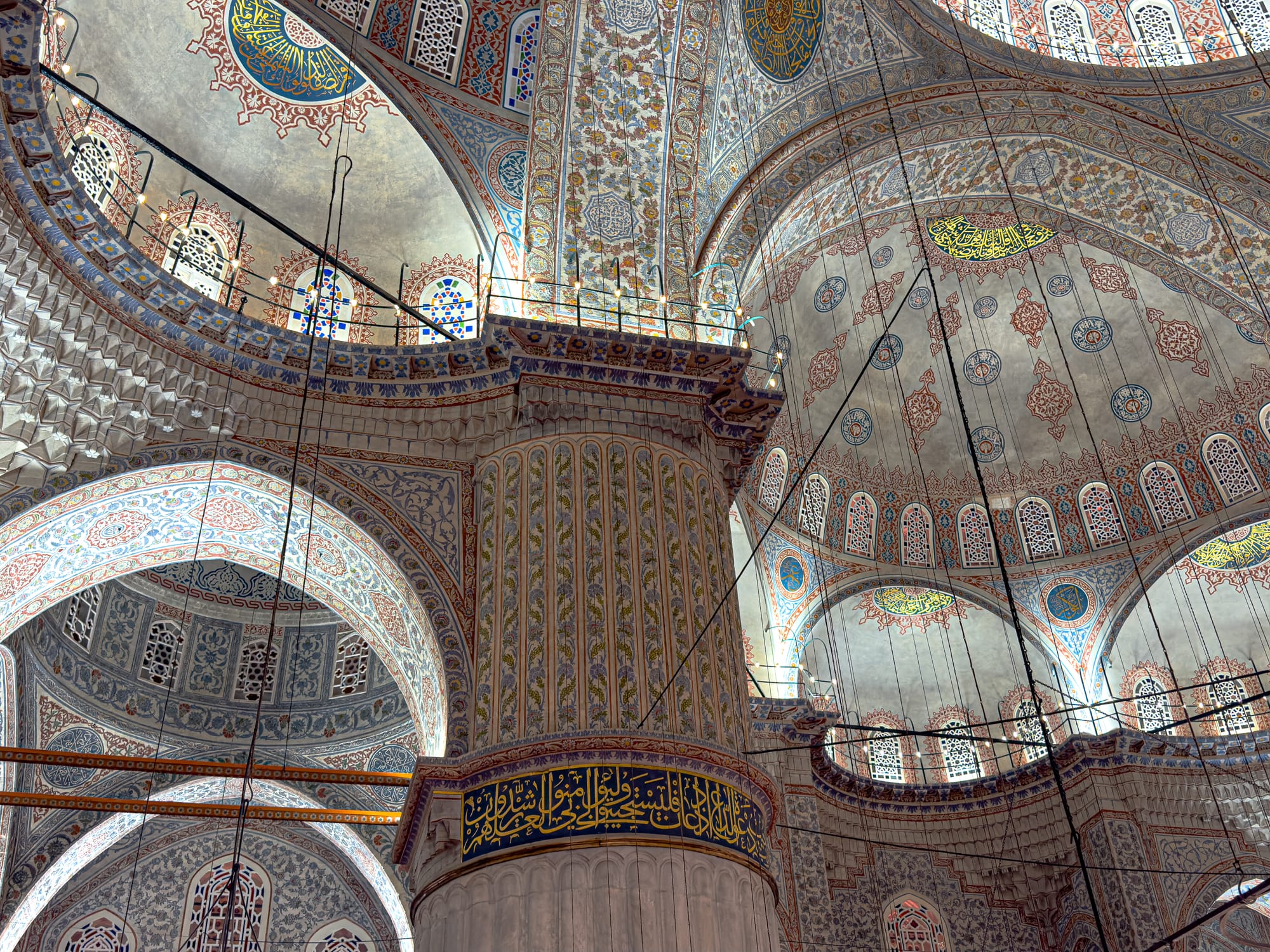 Yet even with its fame, the experience inside remains transportive. Endless rows of Iznik tiles in floral motifs, chandeliers that hang low from a ceiling patterned like the inside of a kaleidoscope, and columns so massive they seem grown rather than built—there's a slow, otherworldly magic to this place.