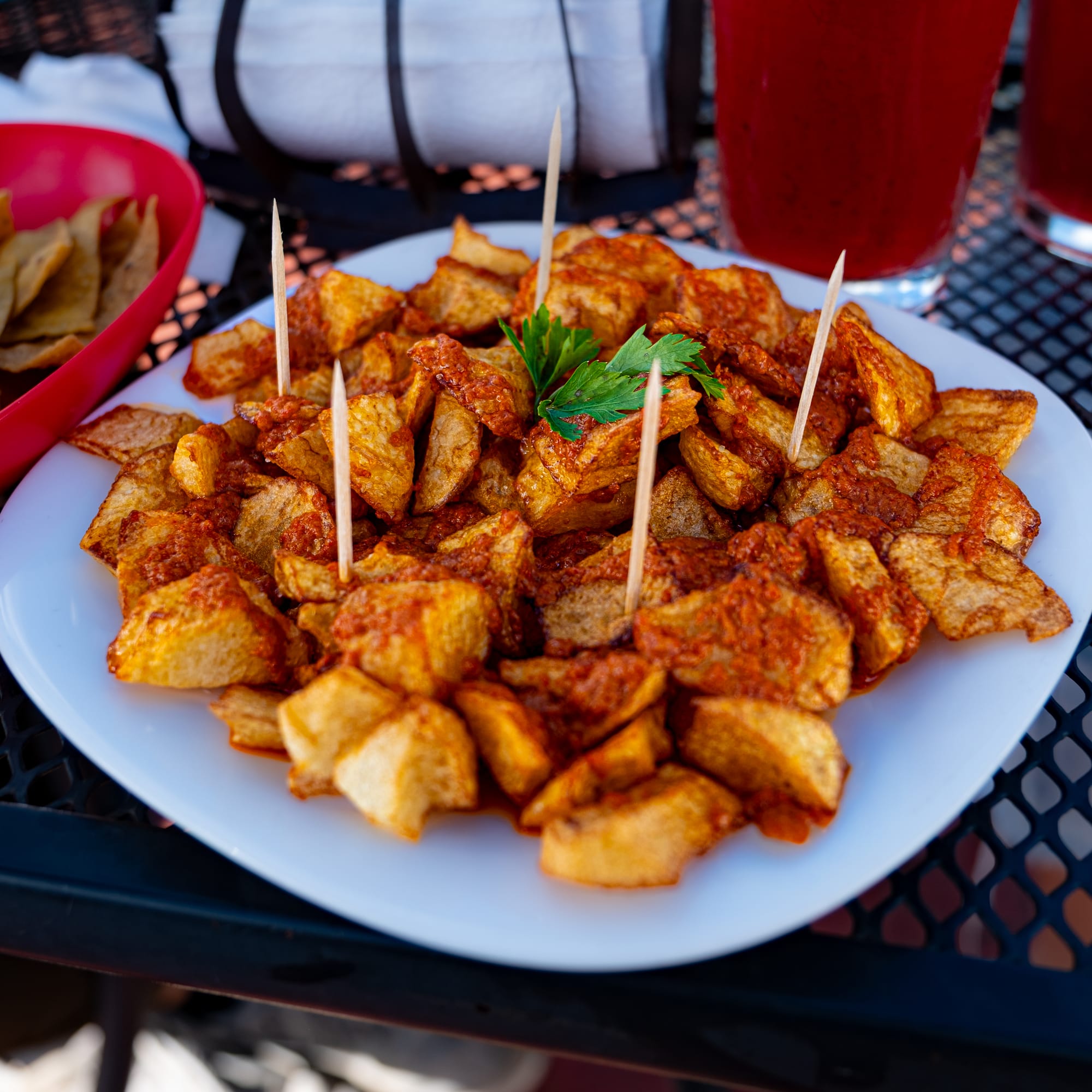 With an amazing rooftop, we enjoyed working from Kinoki many days. They have a number of vegan options, but our favorite was their papas la playa, fried potatoes with a paprika, chili, and garlic sauce. Beyond food, Kinoki describes itself as a center for independent culture.