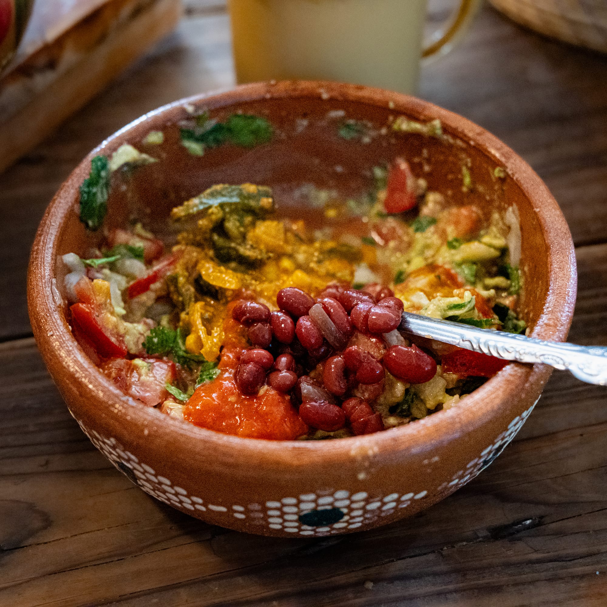 Among our favorite food in San Cristóbal was that which we made in our cooking class with the lovely Itzel. This included vegan mole with mushrooms, chayote vines, a floral salad, various salsas and dips, and a refreshing hibiscus drink. Read about the cooking class.