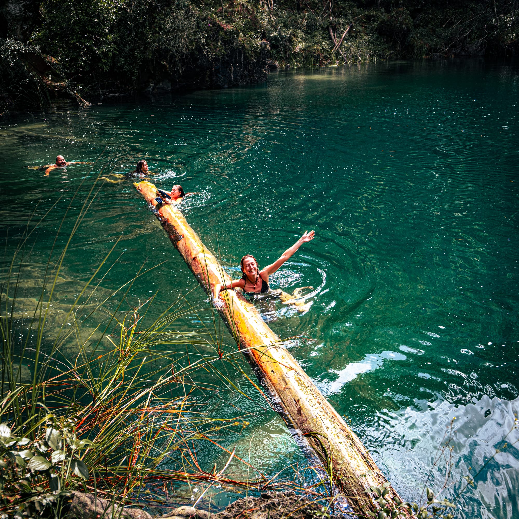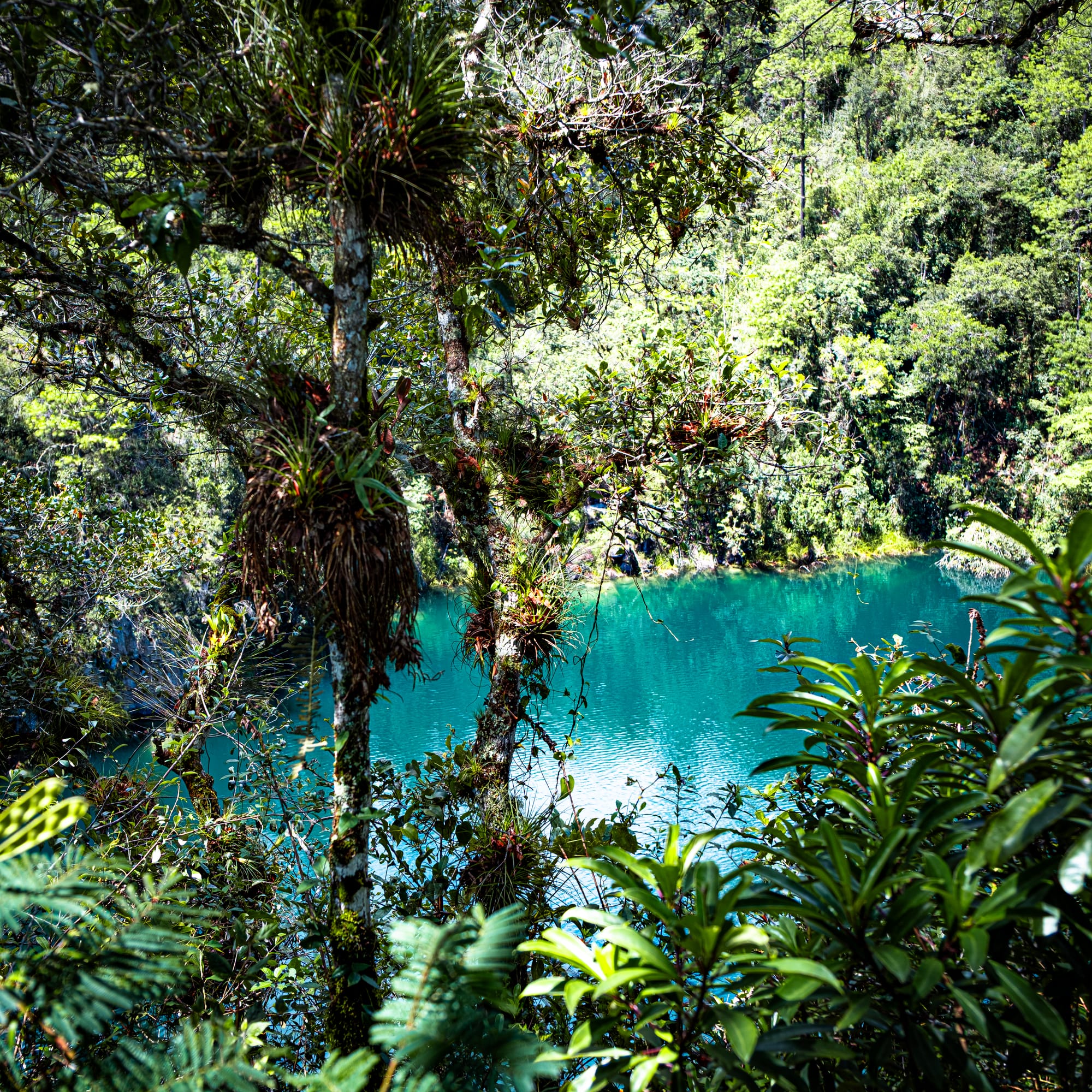 A scenic uphill trail through pine forest leads to Cenote Bartolo, a secluded turquoise sinkhole near Montebello. The climb is steady but rewarding, with sweeping views over the highlands and the many lakes nearby. It’s peaceful, local, and rarely crowded. Read our post.