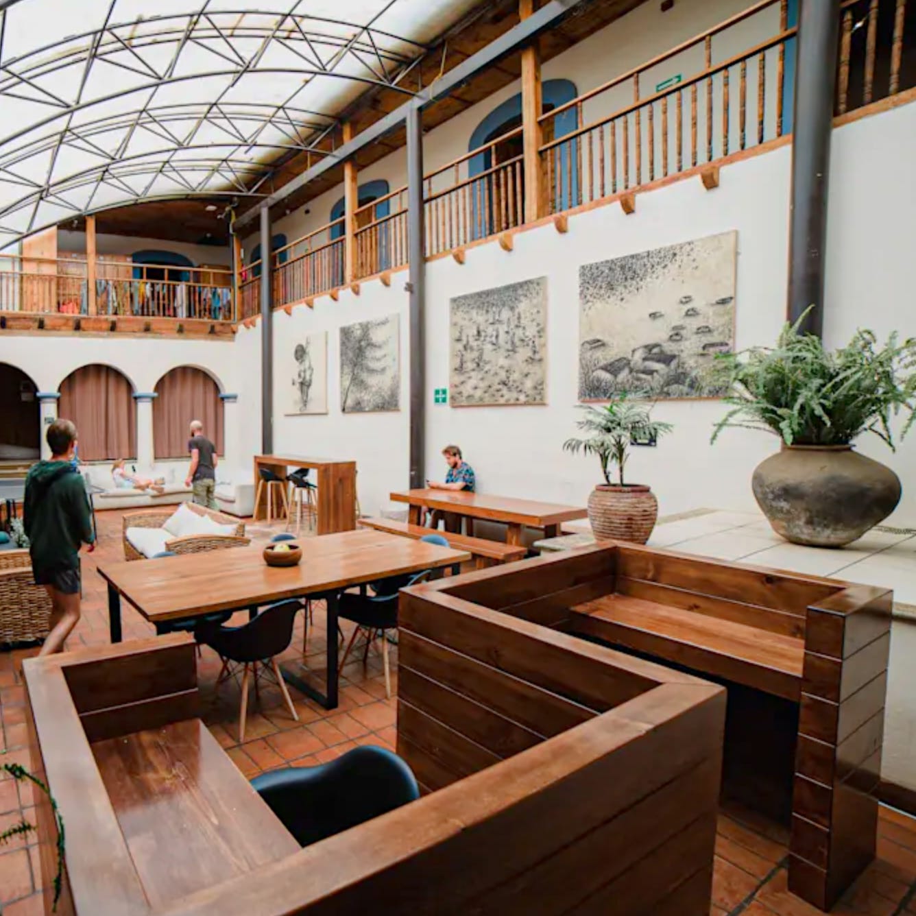 13 Cielos pairs relaxed hostel living with a genuinely useful coworking setup. Dorms and private rooms are modern and well-organized, and the work area has solid wifi and a focused atmosphere. A balanced option for remote workers who want both comfort and connection.