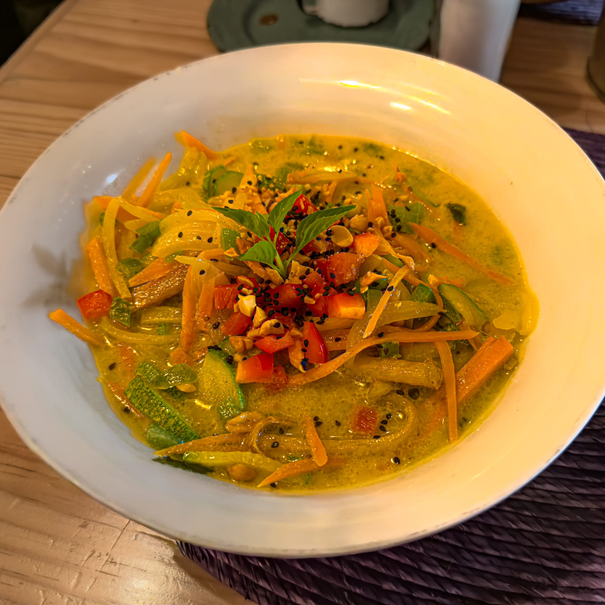 A favorite of ours when we were craving something other than Mexican food, Cocoliche has a bunch of vegan options, including delicious Thai curries. Our favorite was their green curry.
