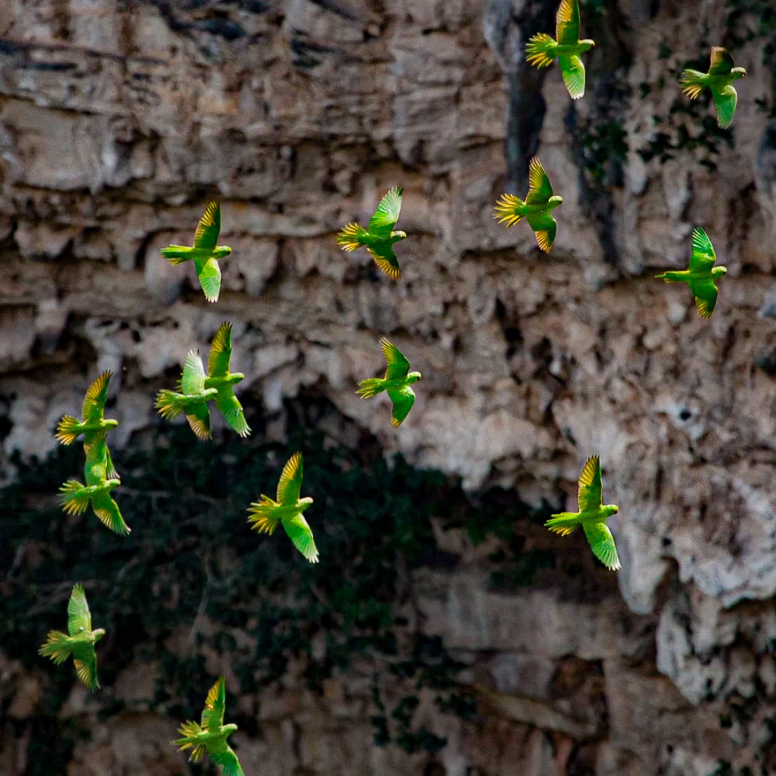 Located near Ocozocoautla, Sima de las Cotorras is a massive sinkhole home to thousands of green parrots that circle at dawn and dusk. You can walk the rim, rappel inside, or visit nearby caves with ancient wall paintings. Photo credit.