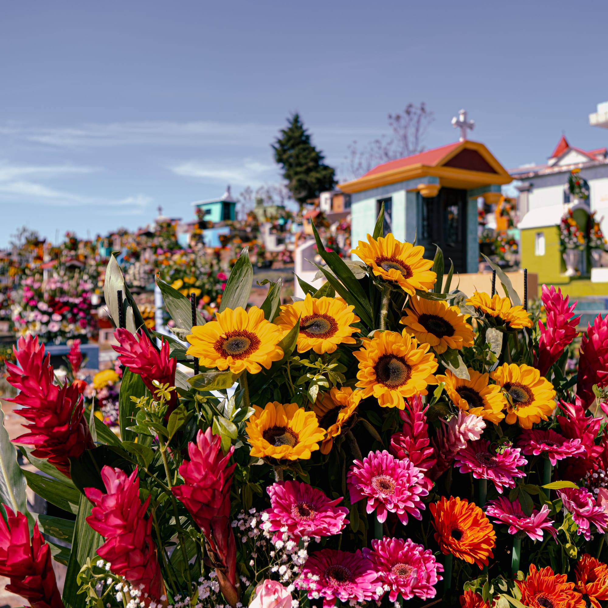 Zinacantán’s cemetery is incredibly floral for Day of the Dead, mainly due to the town's flower industry. The atmosphere is intimate and deeply rooted in Tzotzil tradition, offering a rare glimpse into living rituals of care and memory. Read our post.