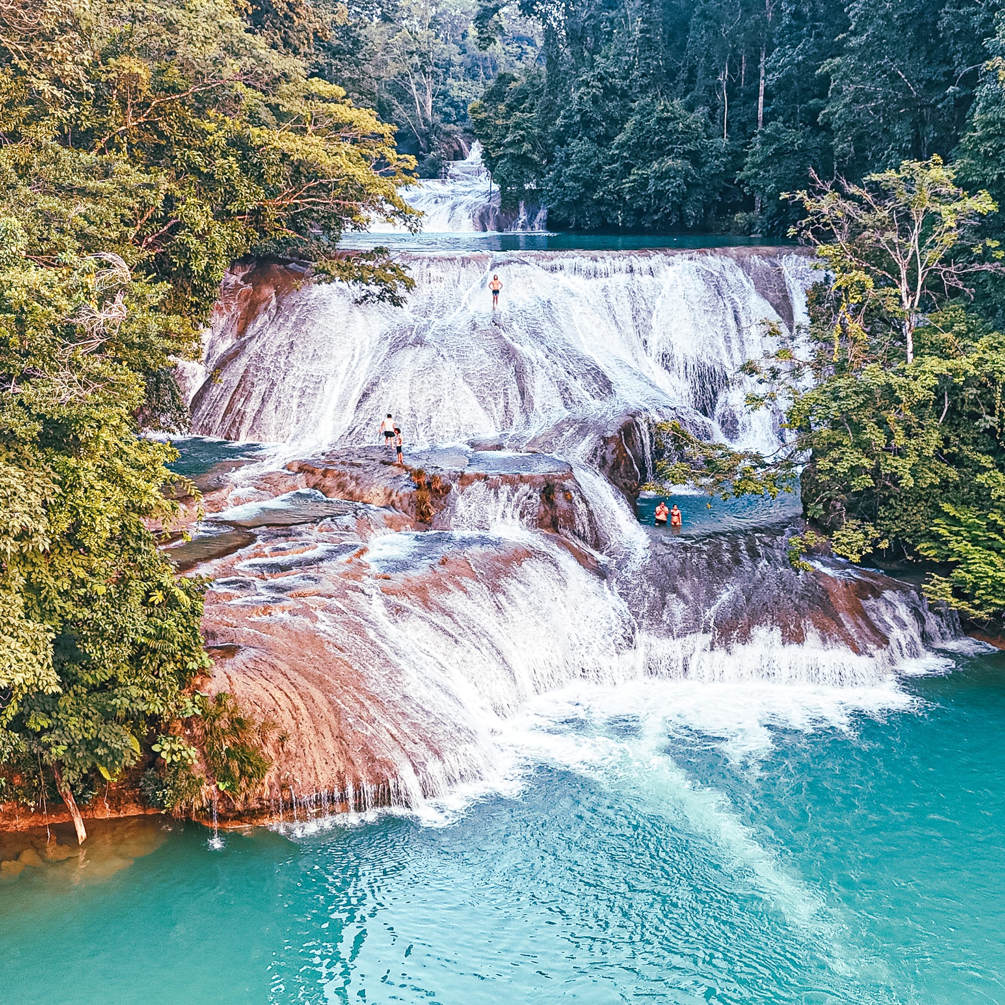 Our favorite waterfalls. Tucked into the jungle outside Palenque, Cascadas Roberto Barrios is a series of turquoise pools and gentle falls known for their quiet, local feel. Wooden paths and forest trails lead to multiple swimming spots. Read our post.