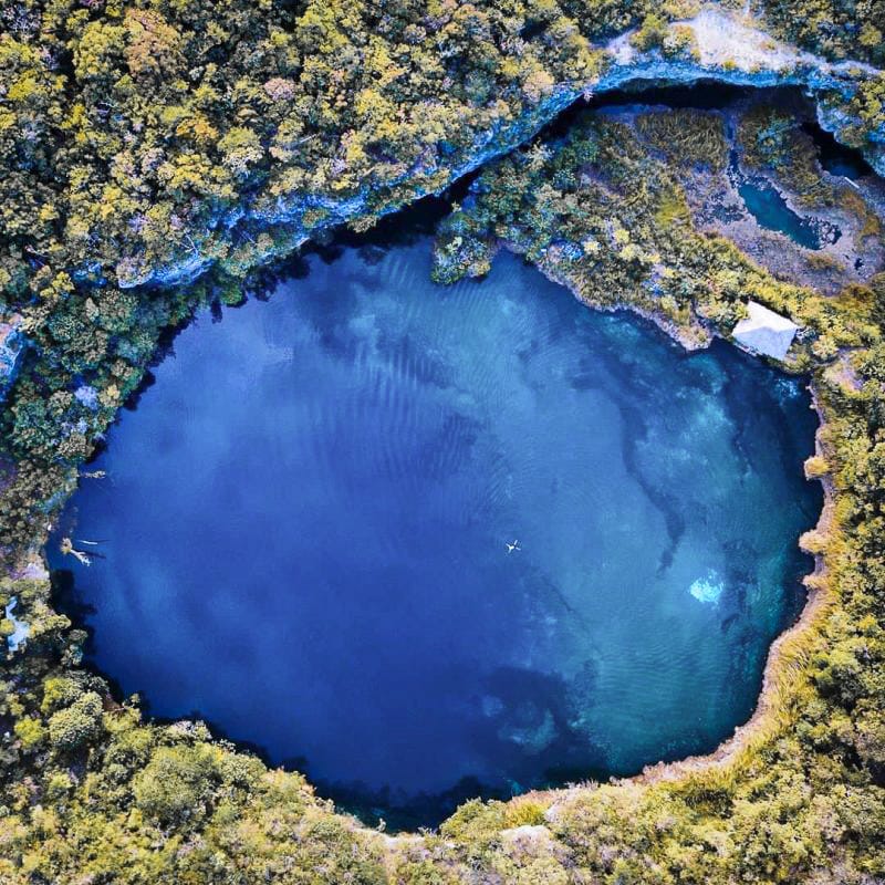 Located just north of Montebello Lakes, Cenote Chucumaltik is a deep, crystal-clear sinkhole surrounded by cliffs and forest. It’s popular with divers and swimmers, with vivid blue water and calm, open views. Photo credit.