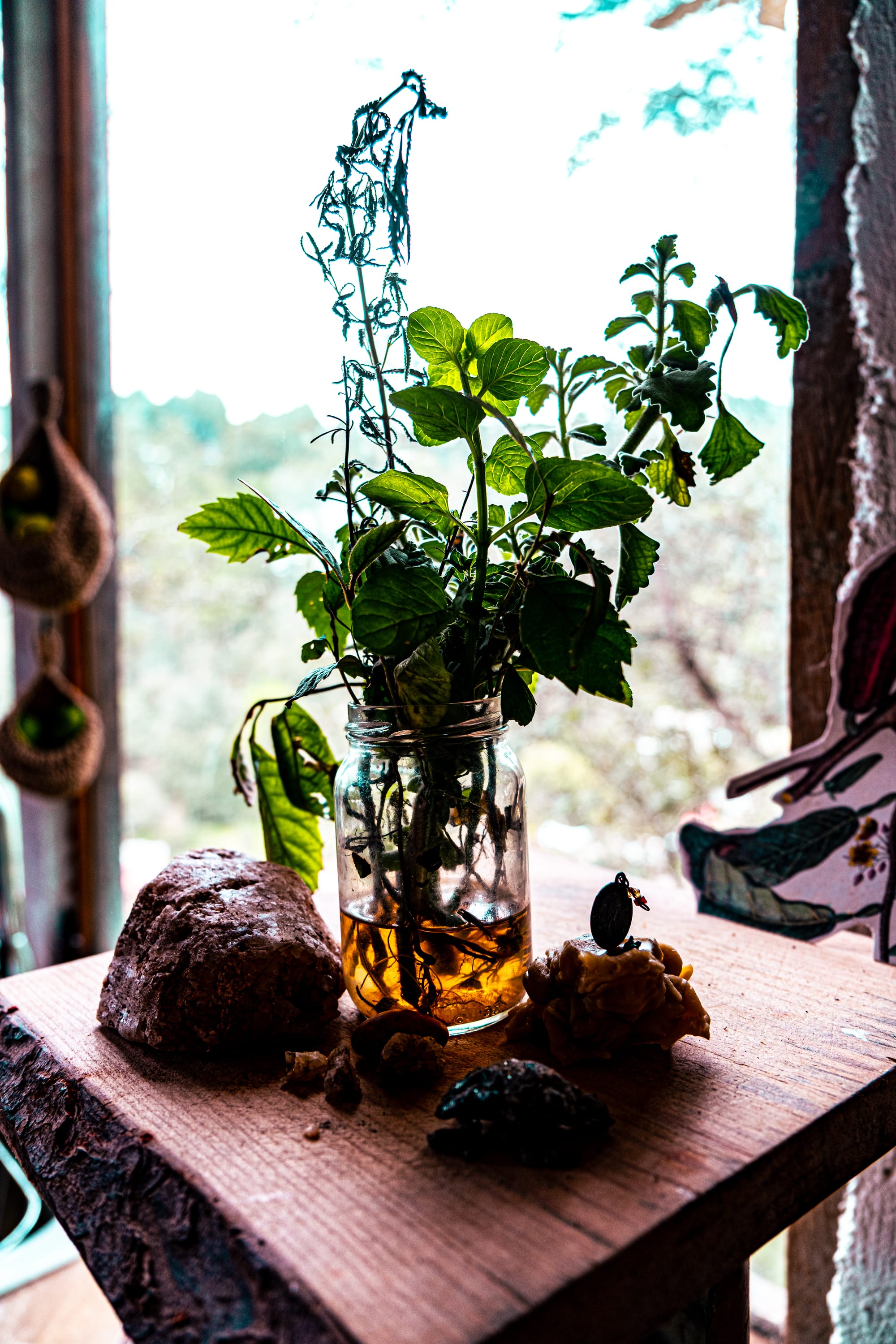 Quiet corners of Itzel’s mountain home, filled with herbs, handmade objects, and the open porch where the forest feels close