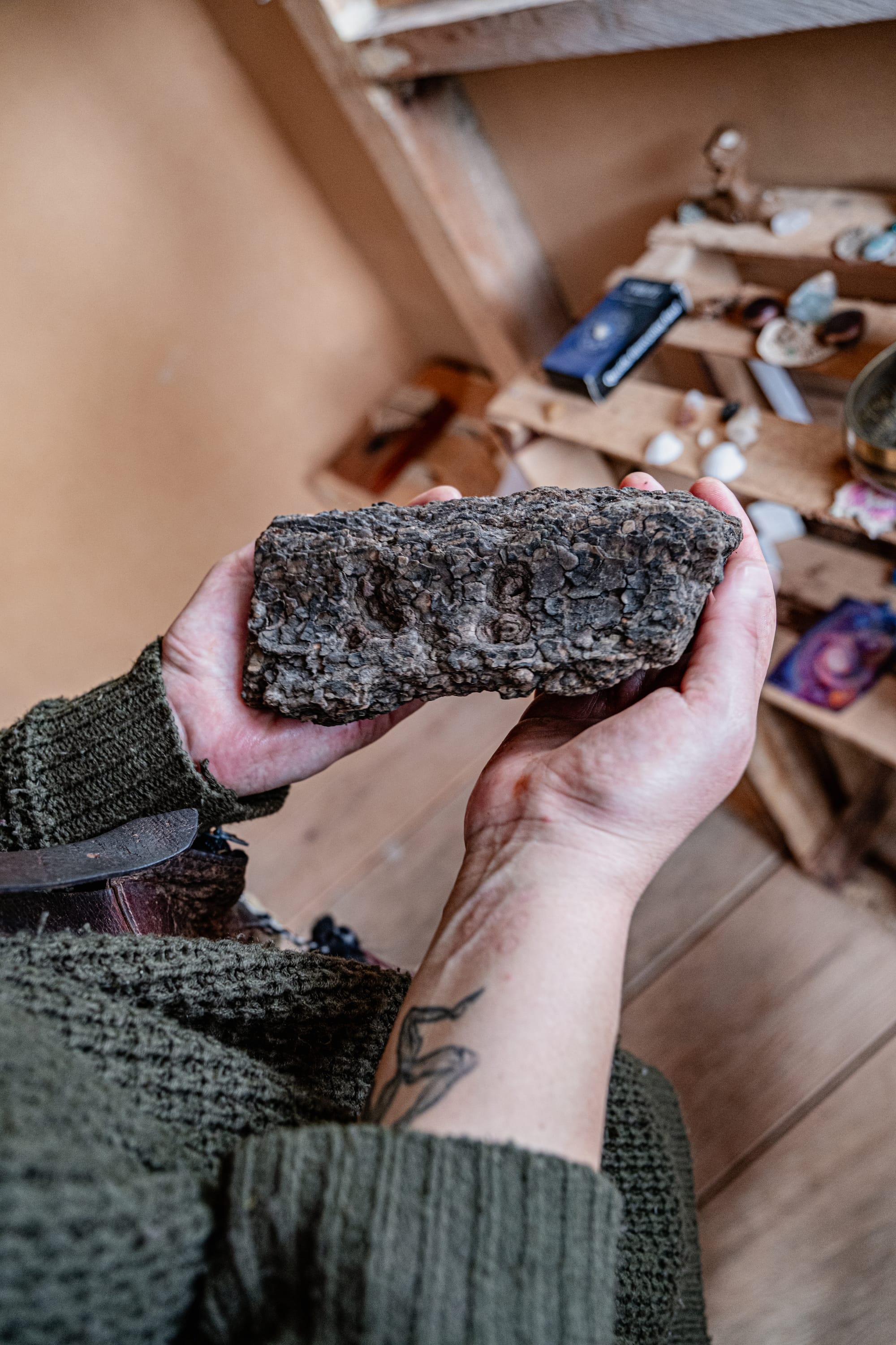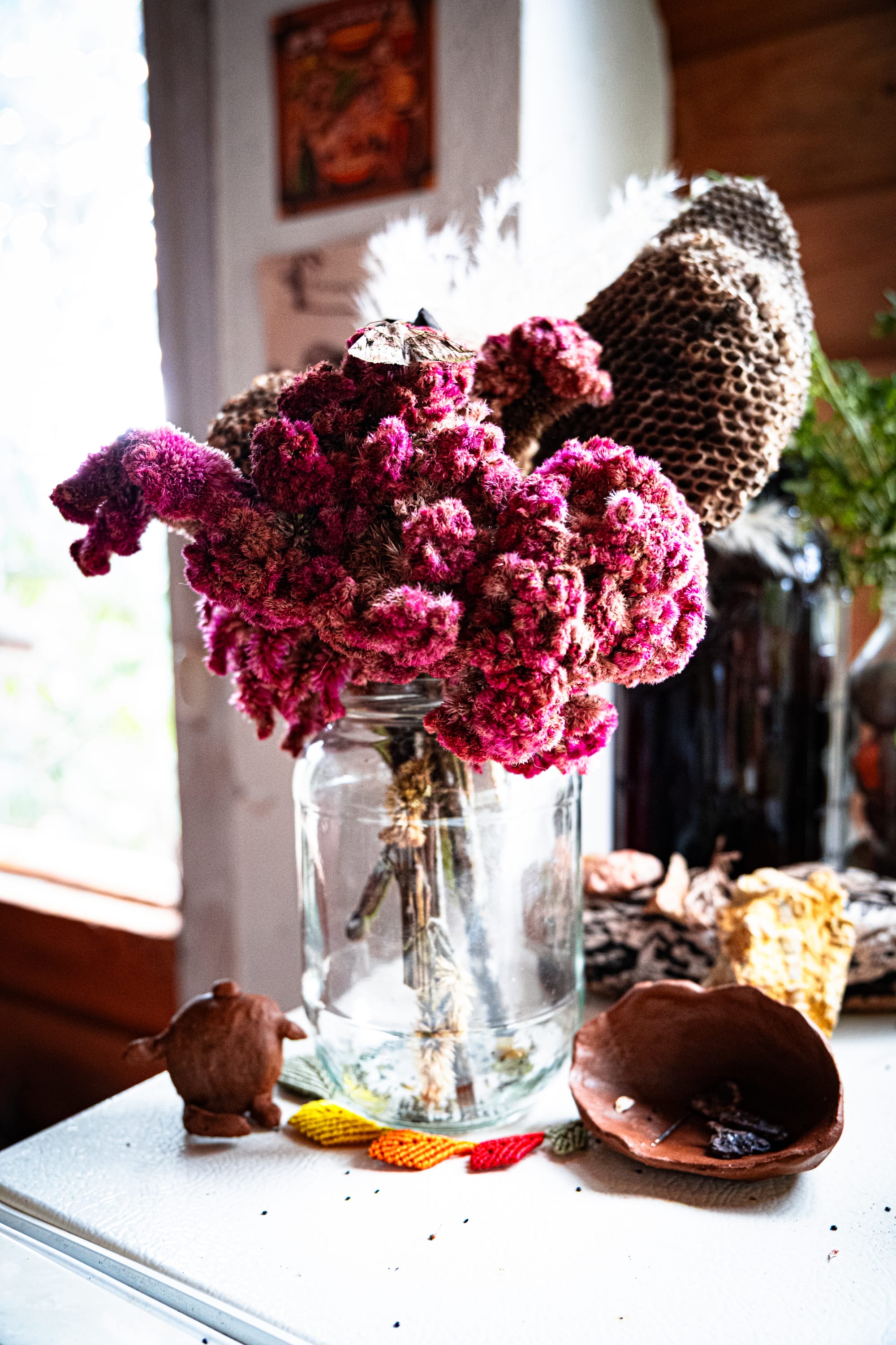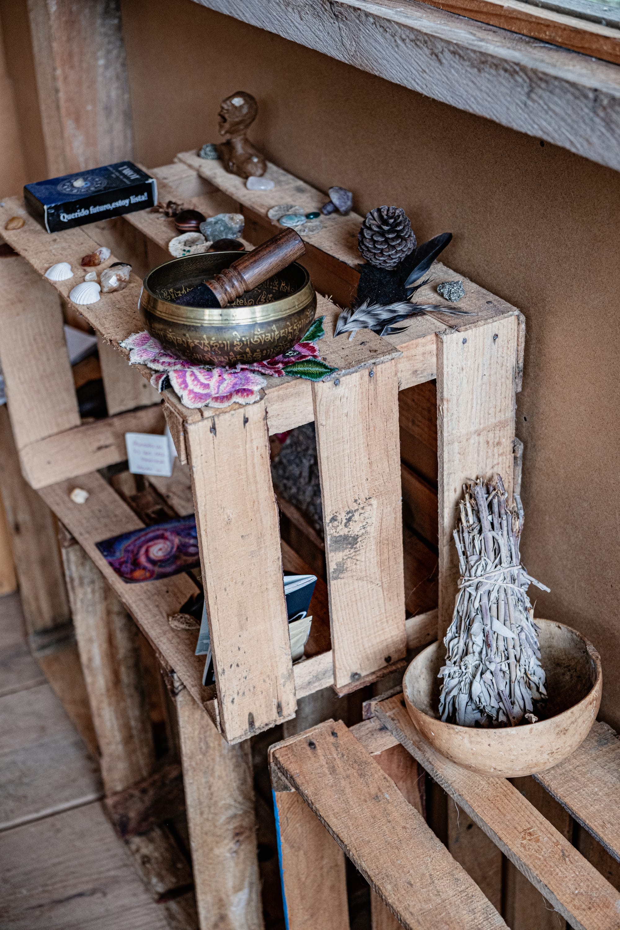 Itzel's home is one of those spaces that seems built as much by the land as by human hands. There were natural objects placed everywhere: stones, branches, dried plants, and small talismans. A true fairy garden.