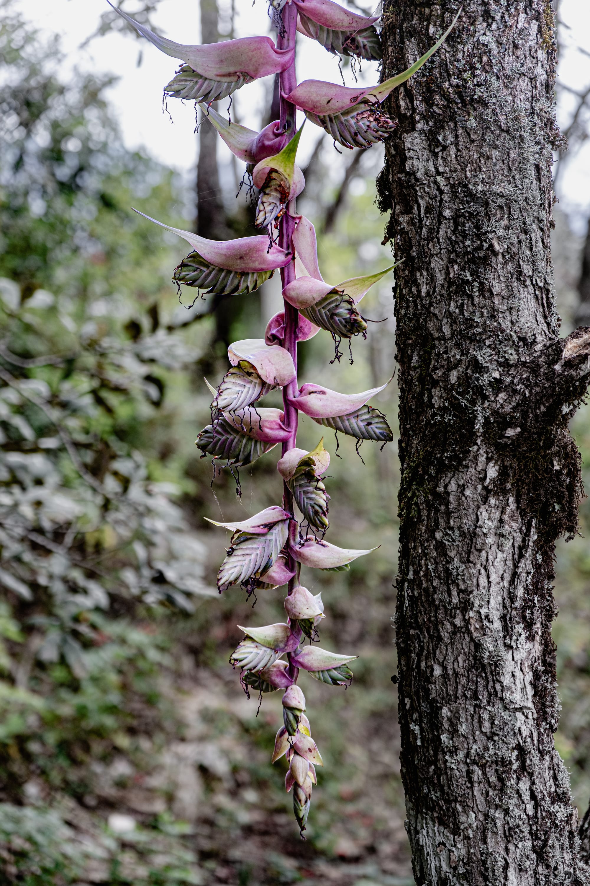 A quiet moment with Itzel’s dog and a trailing mountain bloom outside her home
