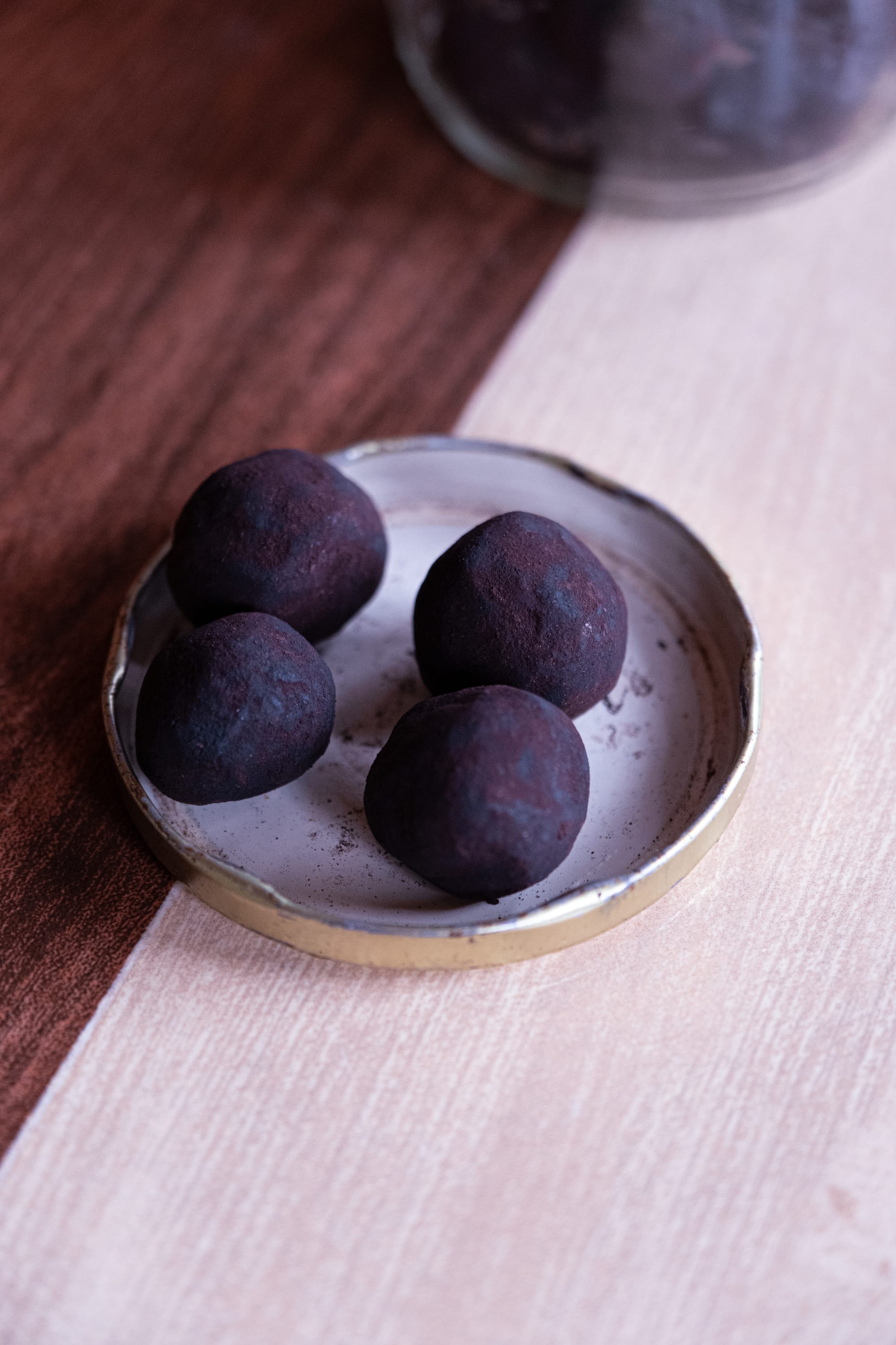 Sapote mashed into a bright, creamy paste, and the cacao truffles Itzel made by hand