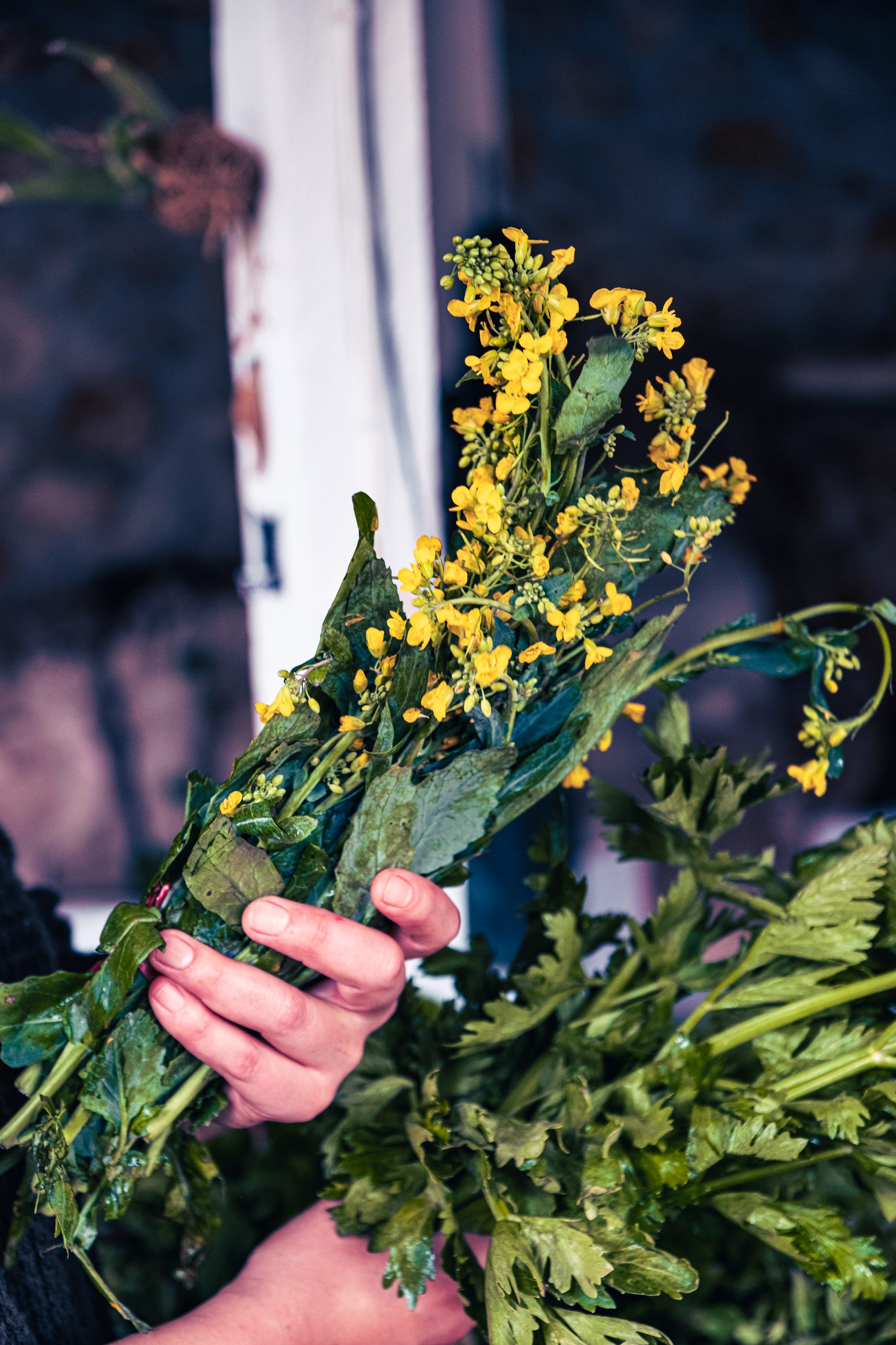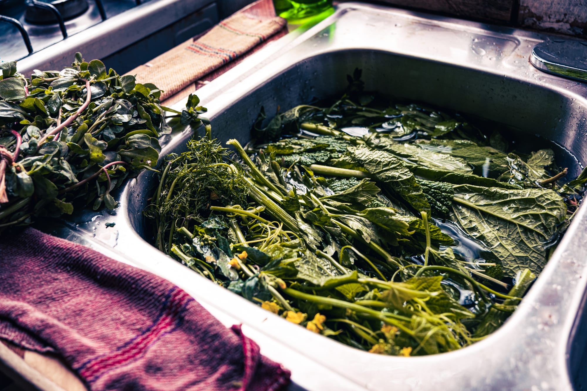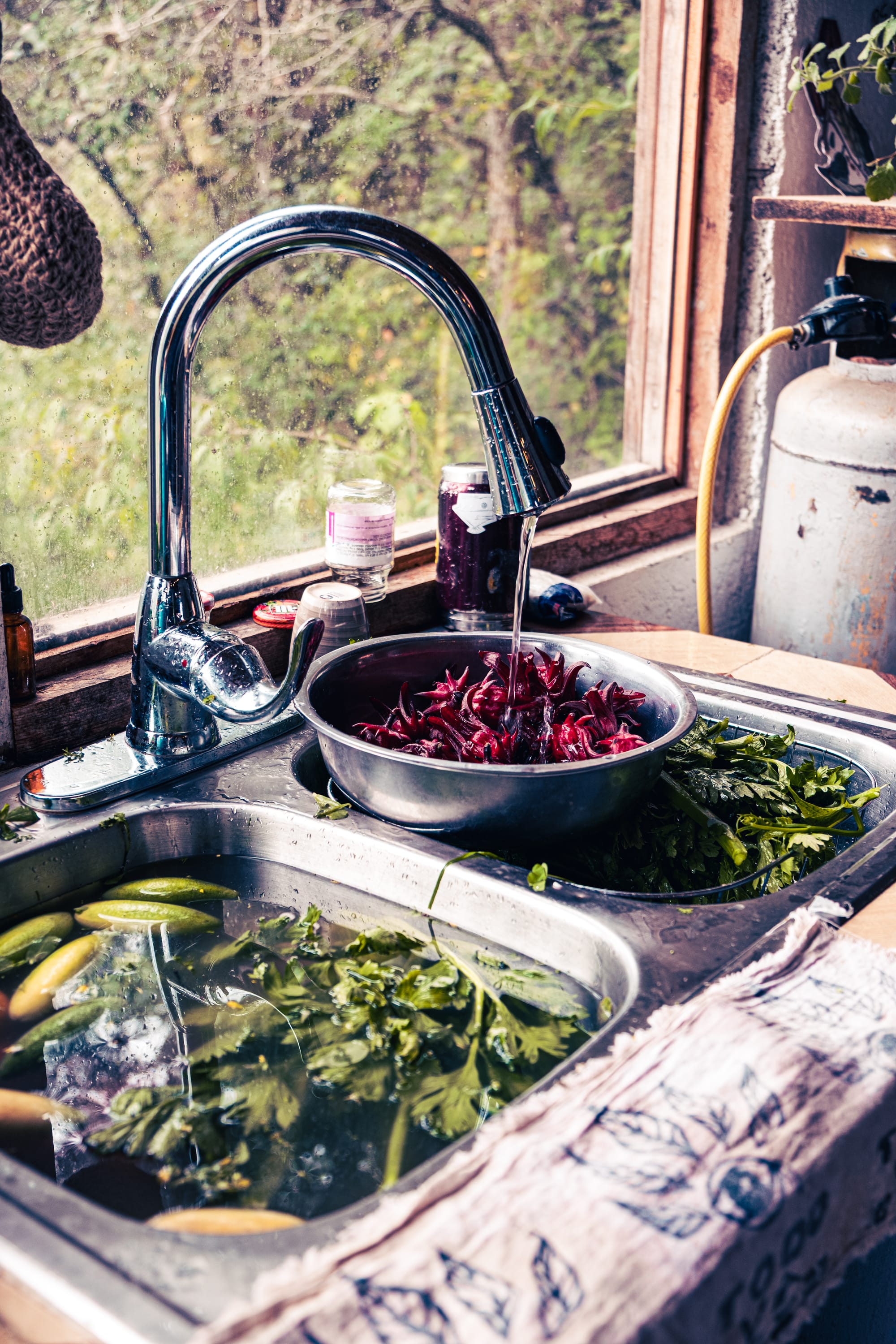 We left it to steep while we cleaned greens and filled the table with the abundance we had gathered from the market.