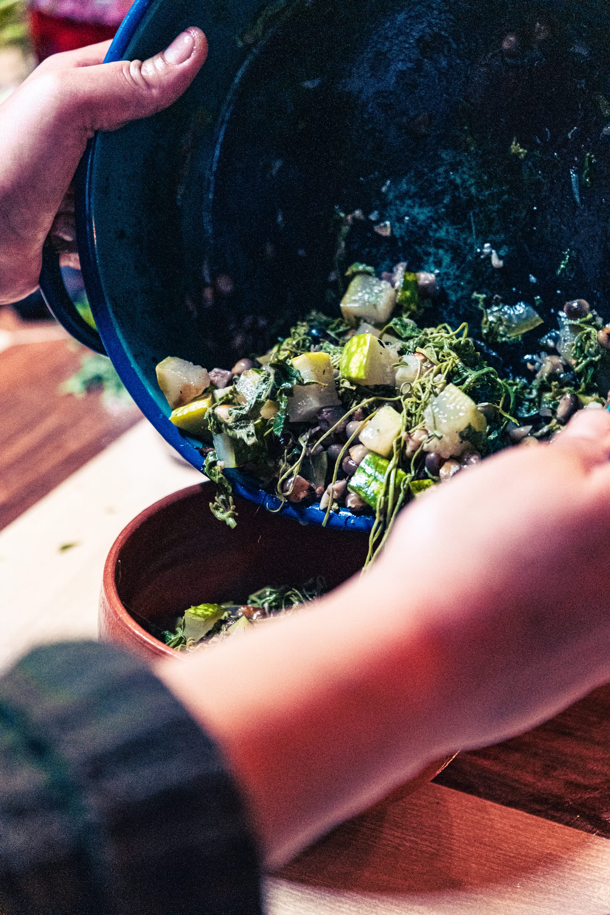 We roasted squash and corn. We cooked the chayote vines, their tendrils turning delicate and soft, almost like a green spaghetti. We seasoned everything with a deep sea salt that tasted sharper, truer.