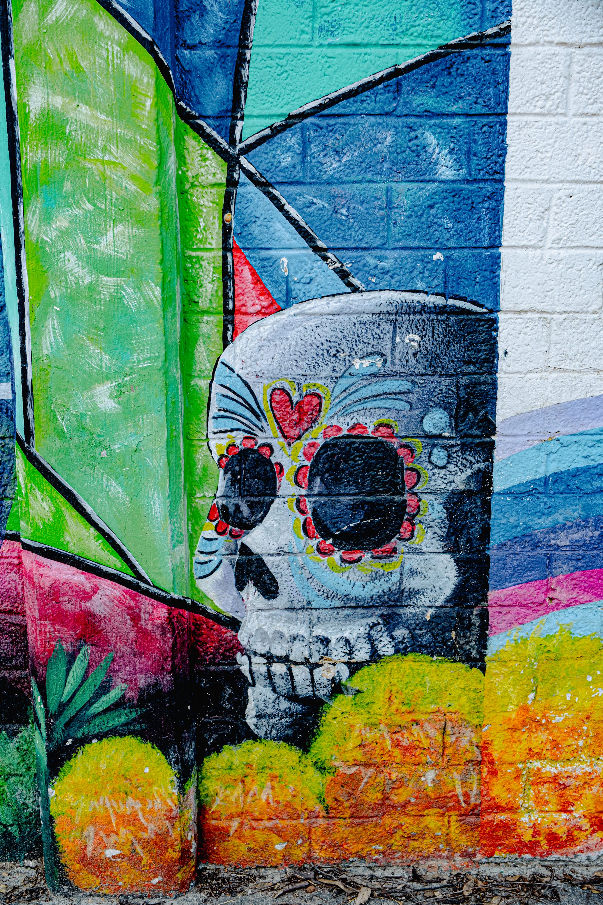 Murals of skulls and La Catrina celebrate beauty, remembrance, and transformation